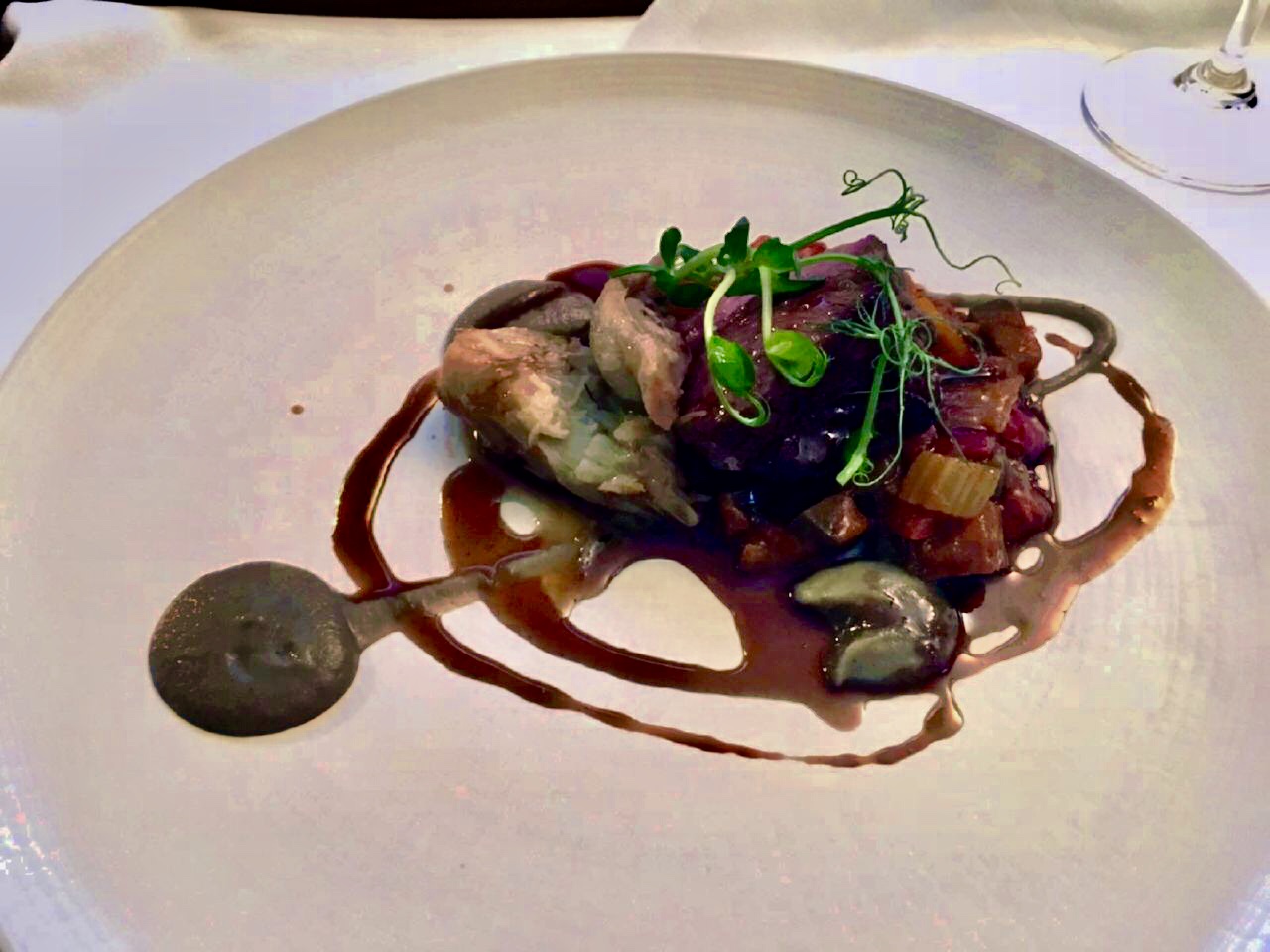 After a lovely stroll around the West End (where I obtained a lovely bottle of white burgundy from The Good Spirits Co Wine and Beer on Clarence Drive) I retreated to the room for a lazy night in. I had the restaurant menu delivered to my room and was told I could choose from the 3 course menu, the room service menu or the Bar menu. It was all very reasonable. I decided to go for the 3 course menu and ordered a beetroot and goats cheese salad, rump of lamb with caponata and smoked aubergine and a cheese plate. This together with a glass of un-oaked Chardonnay for £22!