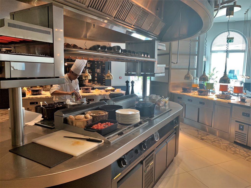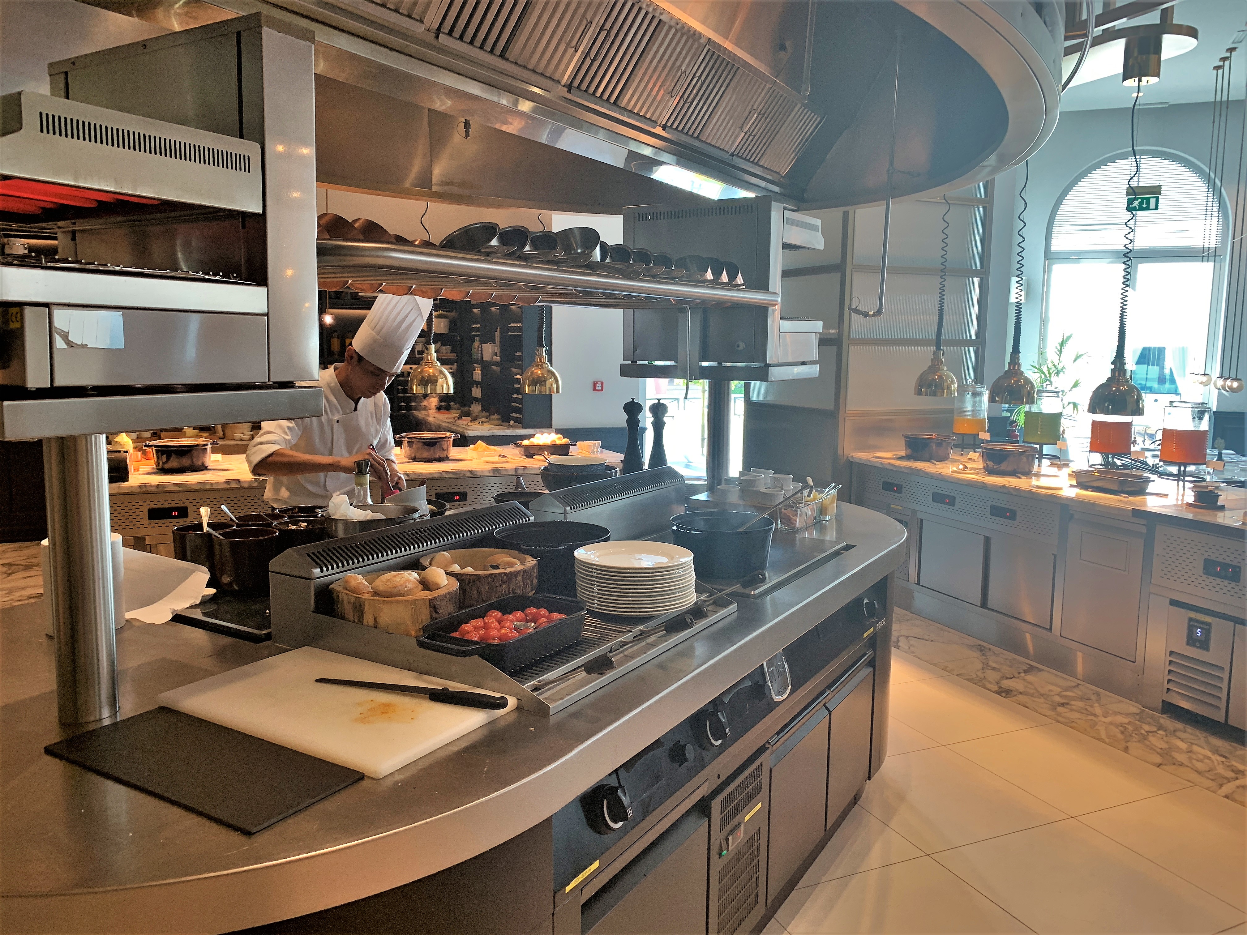There was an unusual arrangement right in the centre of the buffet section with an open area where the chef would cook your eggs to order.
