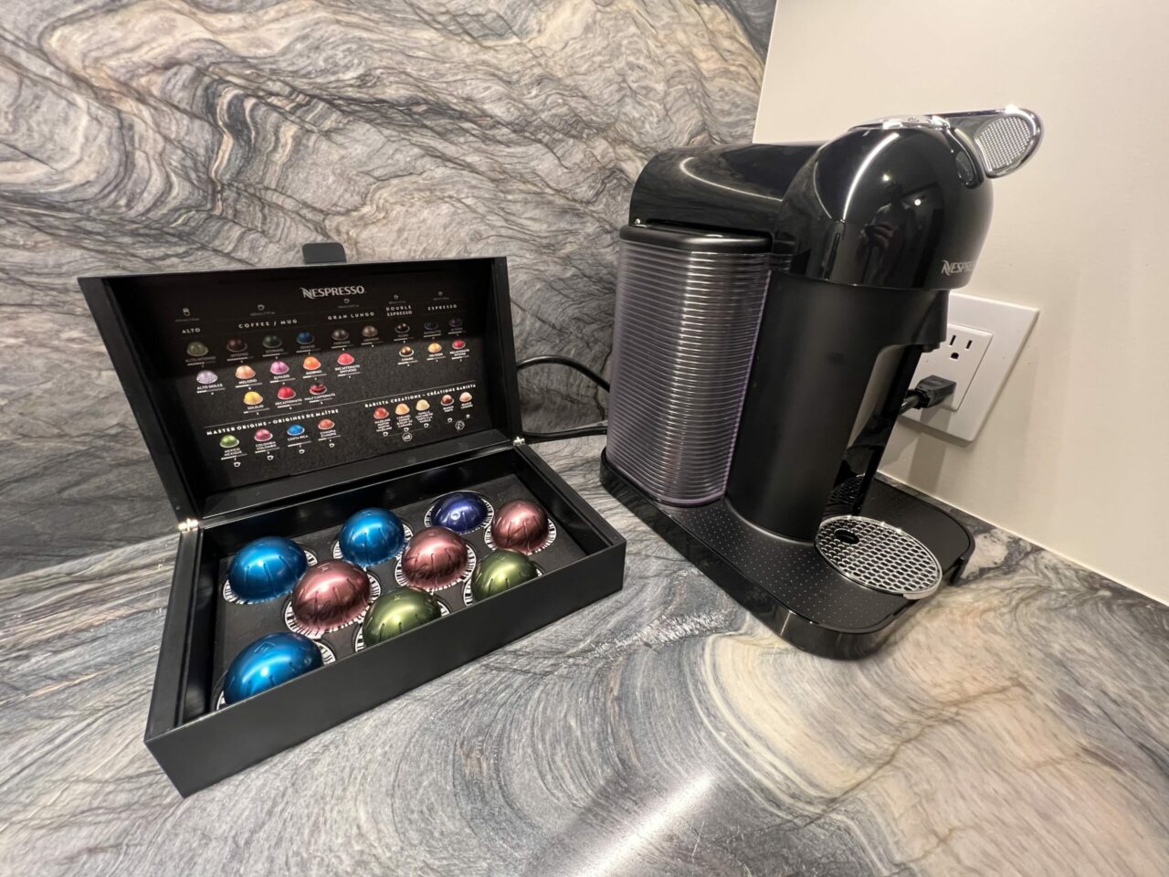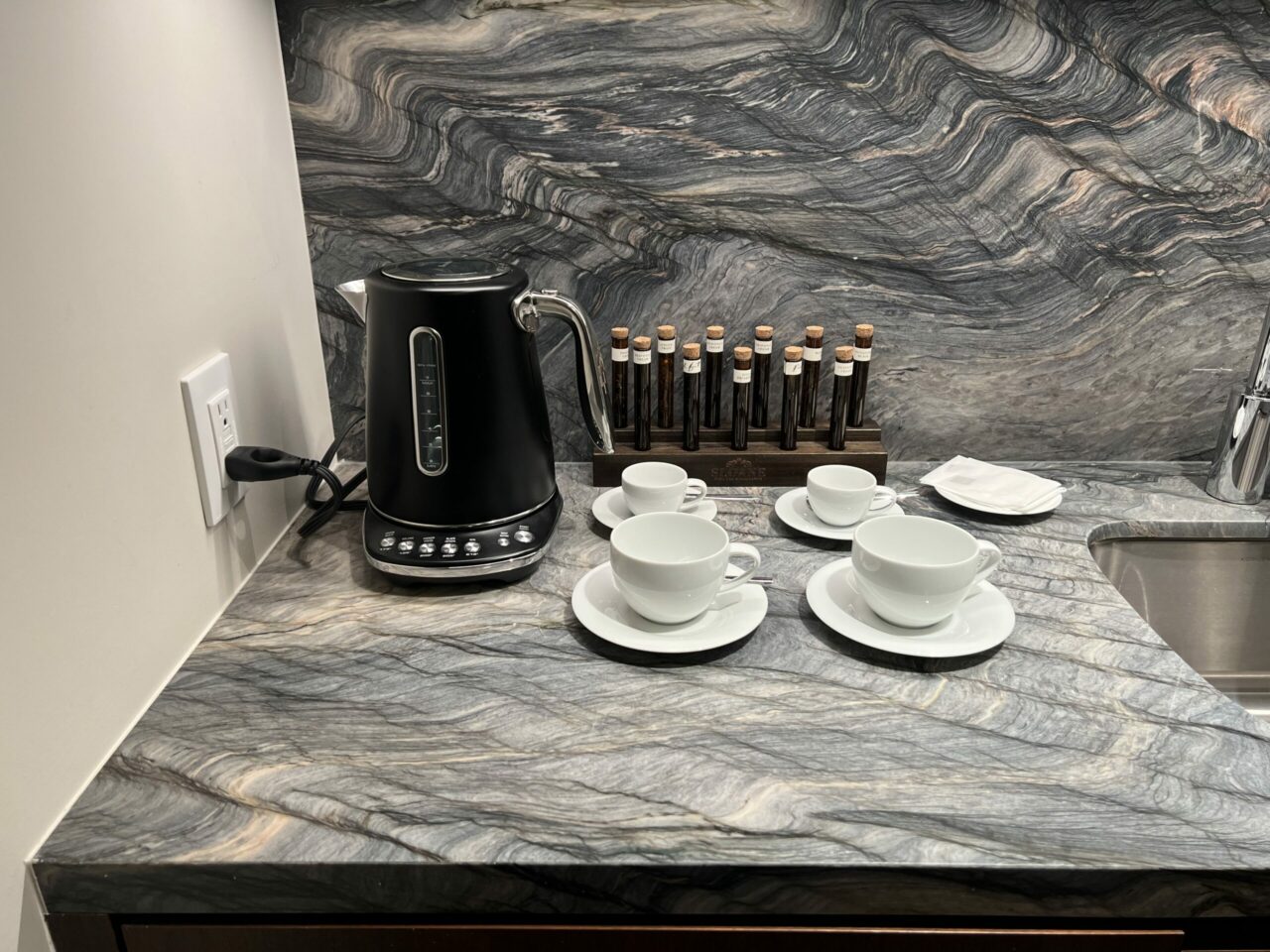 Both a kettle and Nespresso machine is installed in the kitchen with an extensive selection of pods, tea bags as well as loose tea. The property have worked with Sloane Tea to create their own flavour of tea, which I didn’t manage to try.