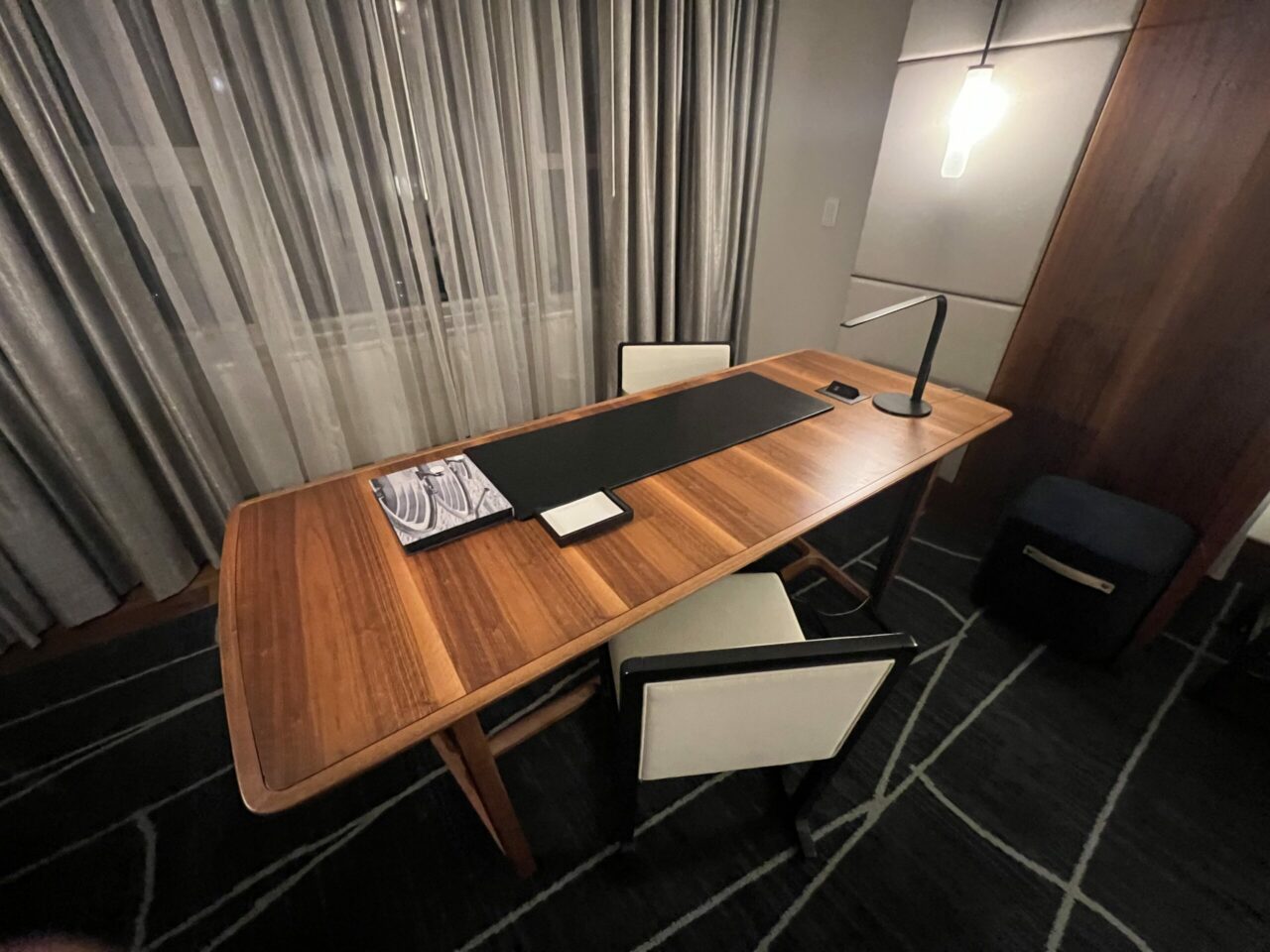 My only issue with this design is the living area looks directly onto the desk space. Personally, I would rather this be a space that can be separated off with a curtain to feel like the working space is blocked off. The desk itself is huge and the chair looks like it would be suitable to spend extended time working from. It was noted that the hotel has two different providers for their internet to ensure there is always high speed connectivity, which should make this a good location to stay connected at.