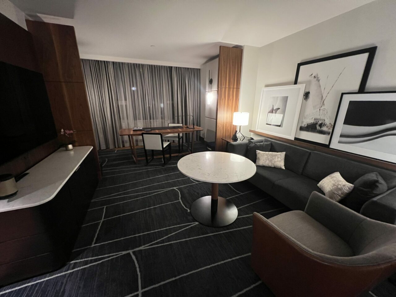 Which leads us onto the combined living and working area of the suite. A sizeable space, this feels like a space you could spend an extensive amount of time to relax in front of the large television as well as splitting off from the bedroom.