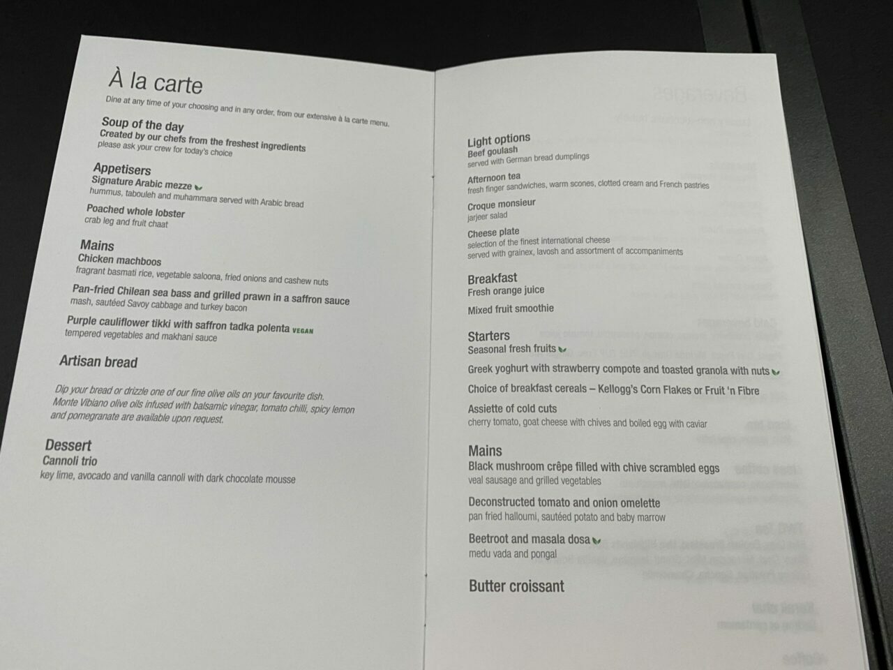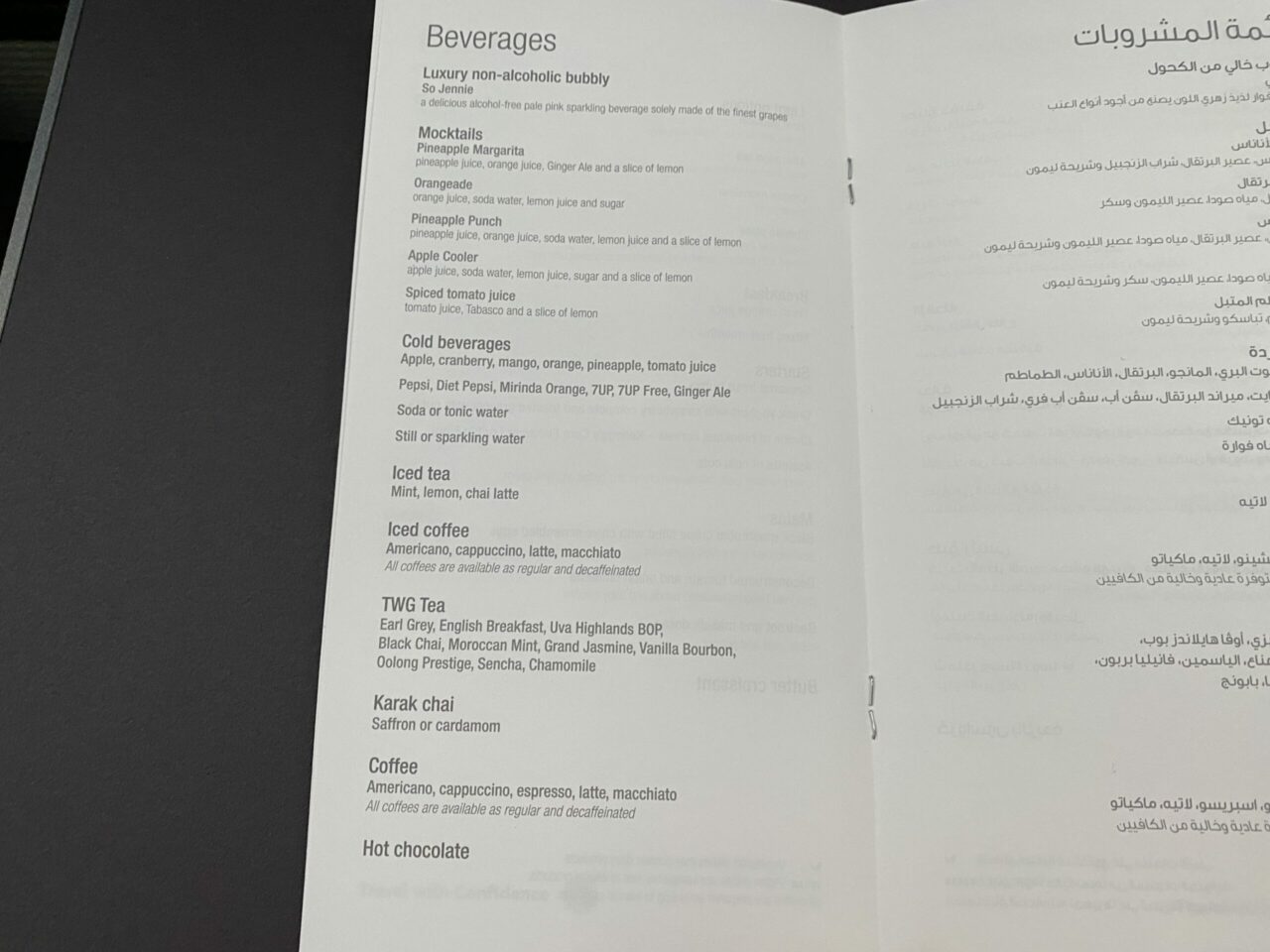 Al Mourjan Business Lounge menu