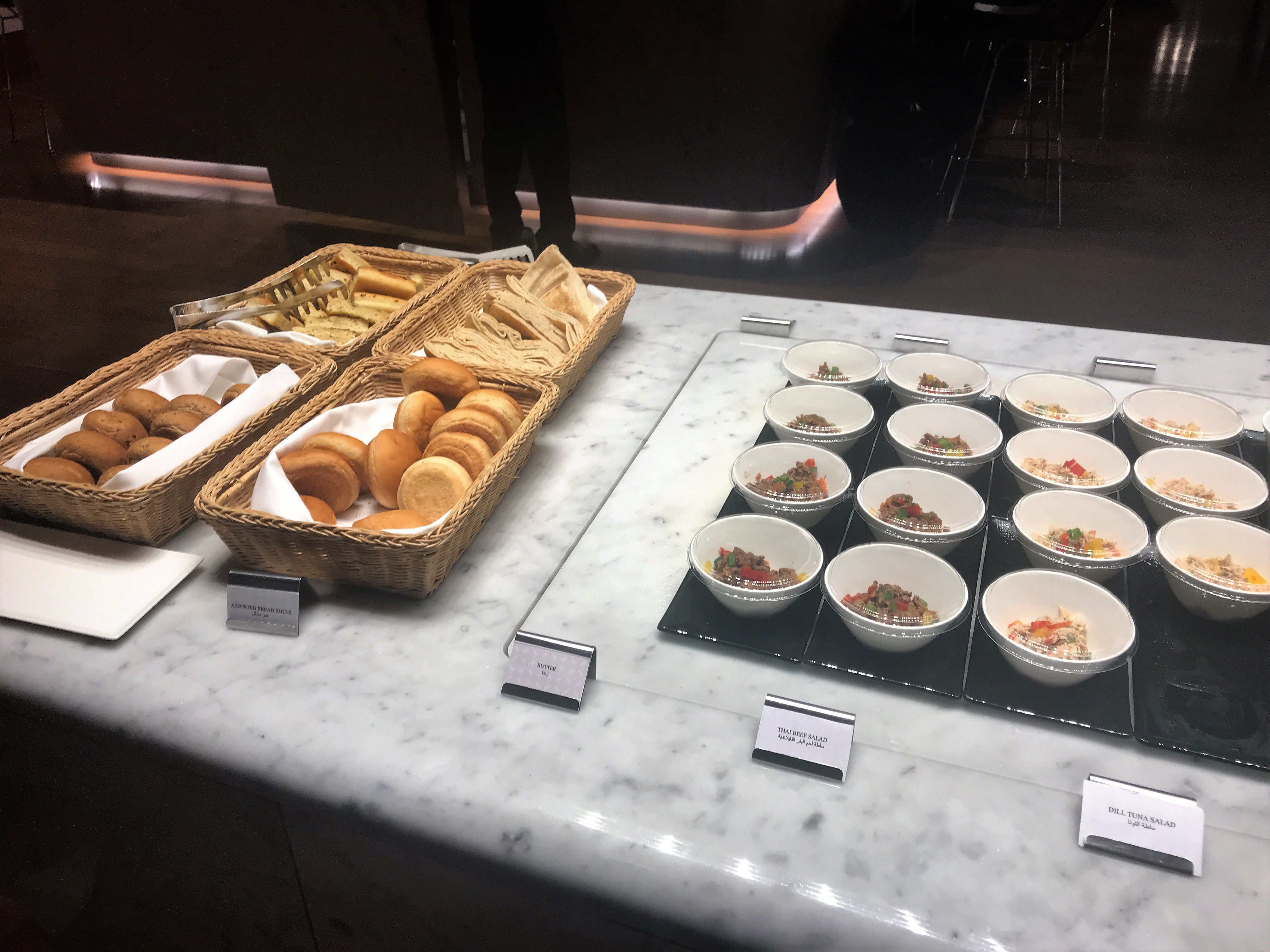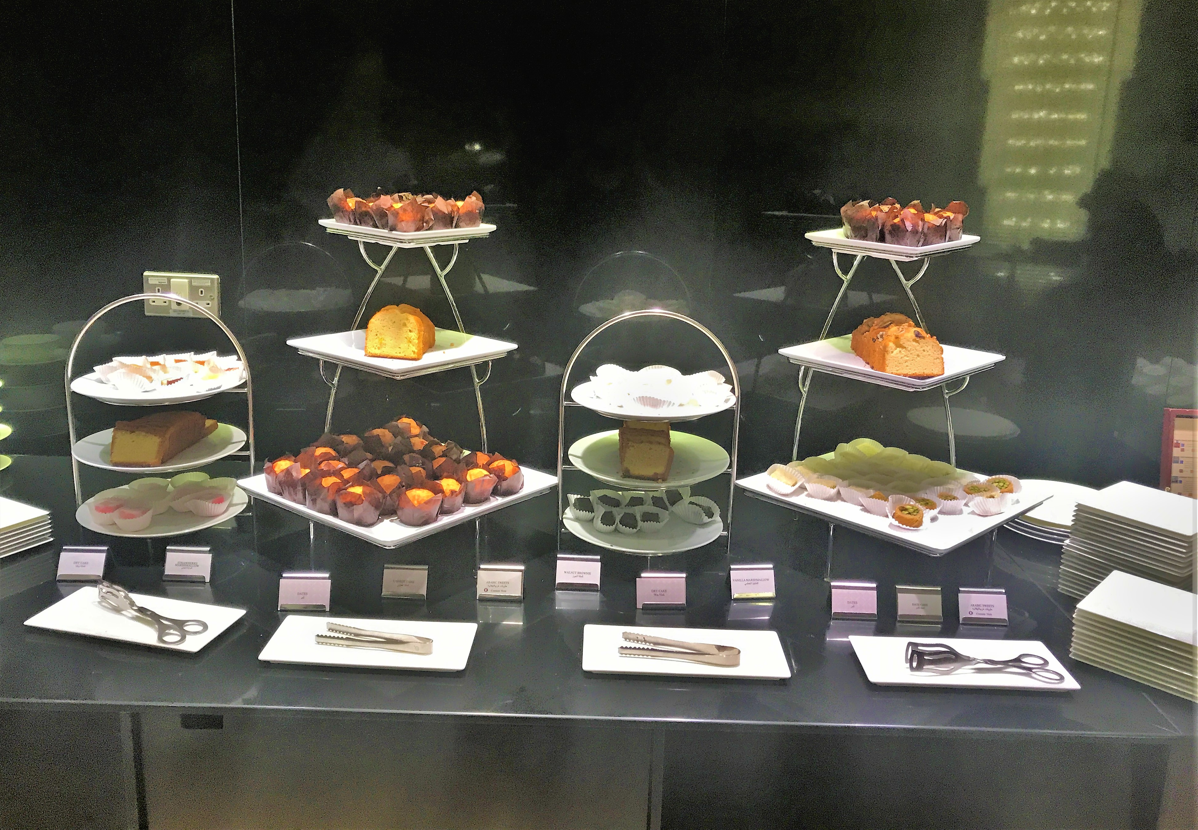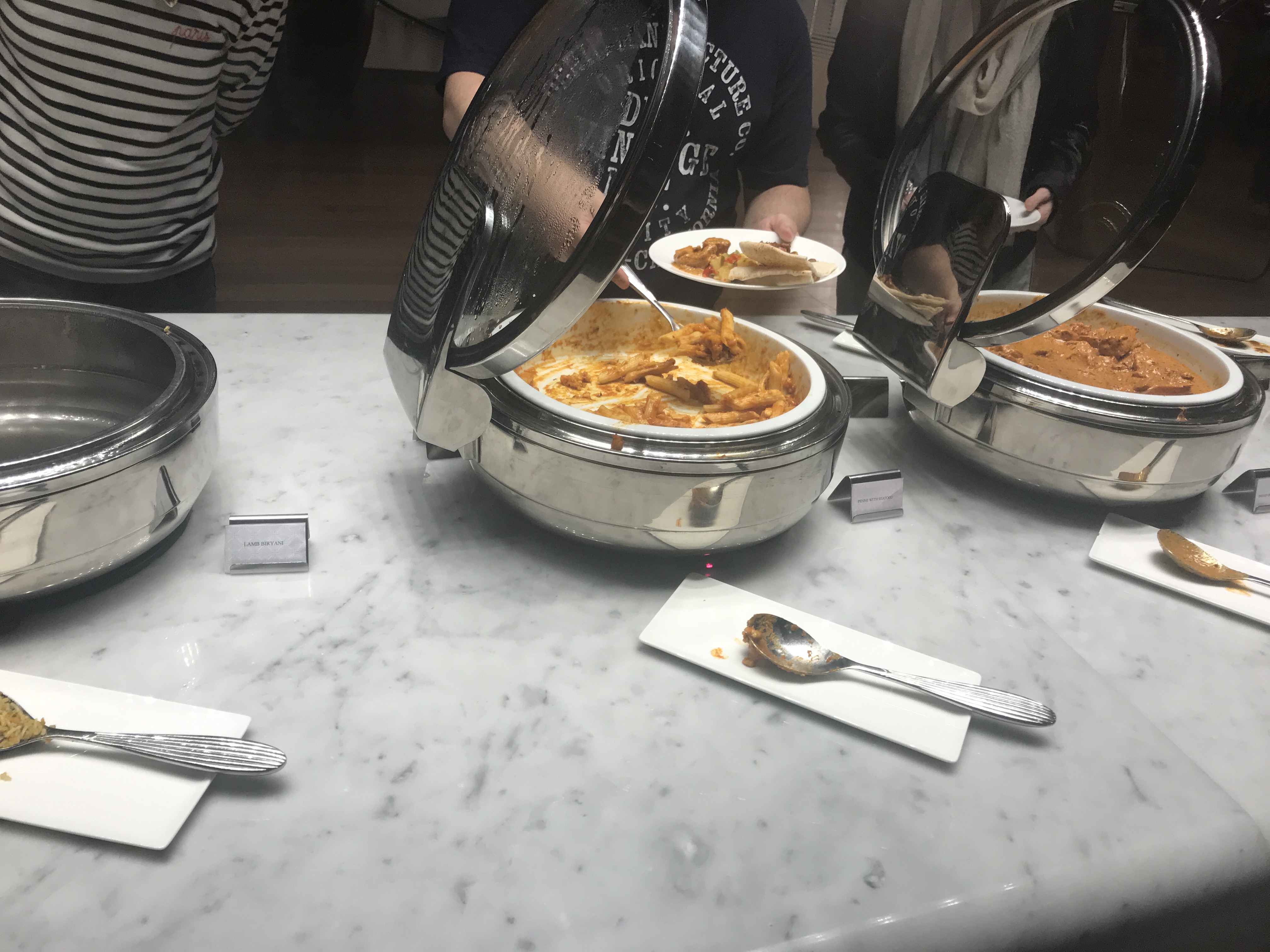 The buffet was very busy but it did have a decent selection of hot and cold options with butter chicken, mezze, vegetable chop suey, beef goulash, soup, penne with seafood, lamb biryani and salads. There was a separate area with a bean to cup coffee machine, desserts and cakes. I sampled the lamb biryani and butter chicken – both were tasty though the butter chicken was nowhere near as nice as the one I had in Qatar’s Heathrow lounge.
