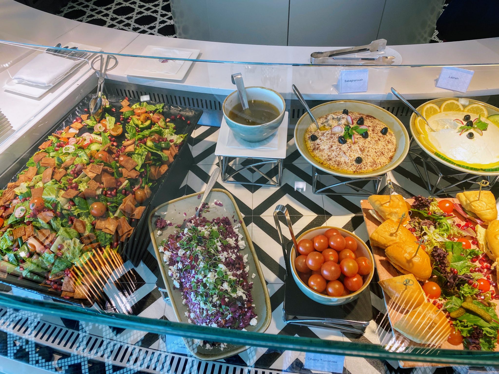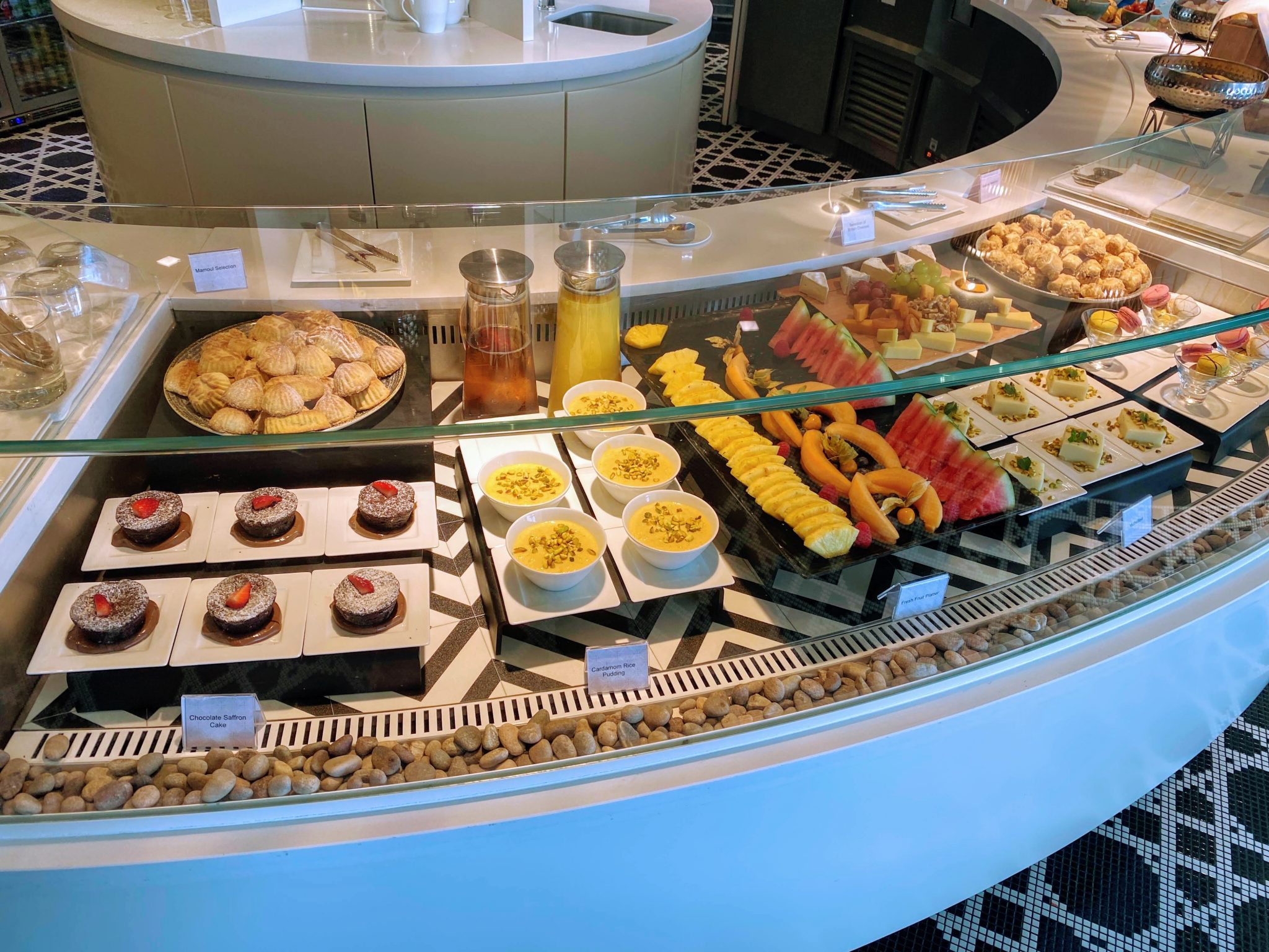 As you enter into the lounge there is a long seating area by the window after the fountain area. You then enter into the deli bar area which has table seating and a couple of banquets at the back. We headed straight for the formal restaurant as we were not due to take off until 3 pm so planned to have a light lunch first.