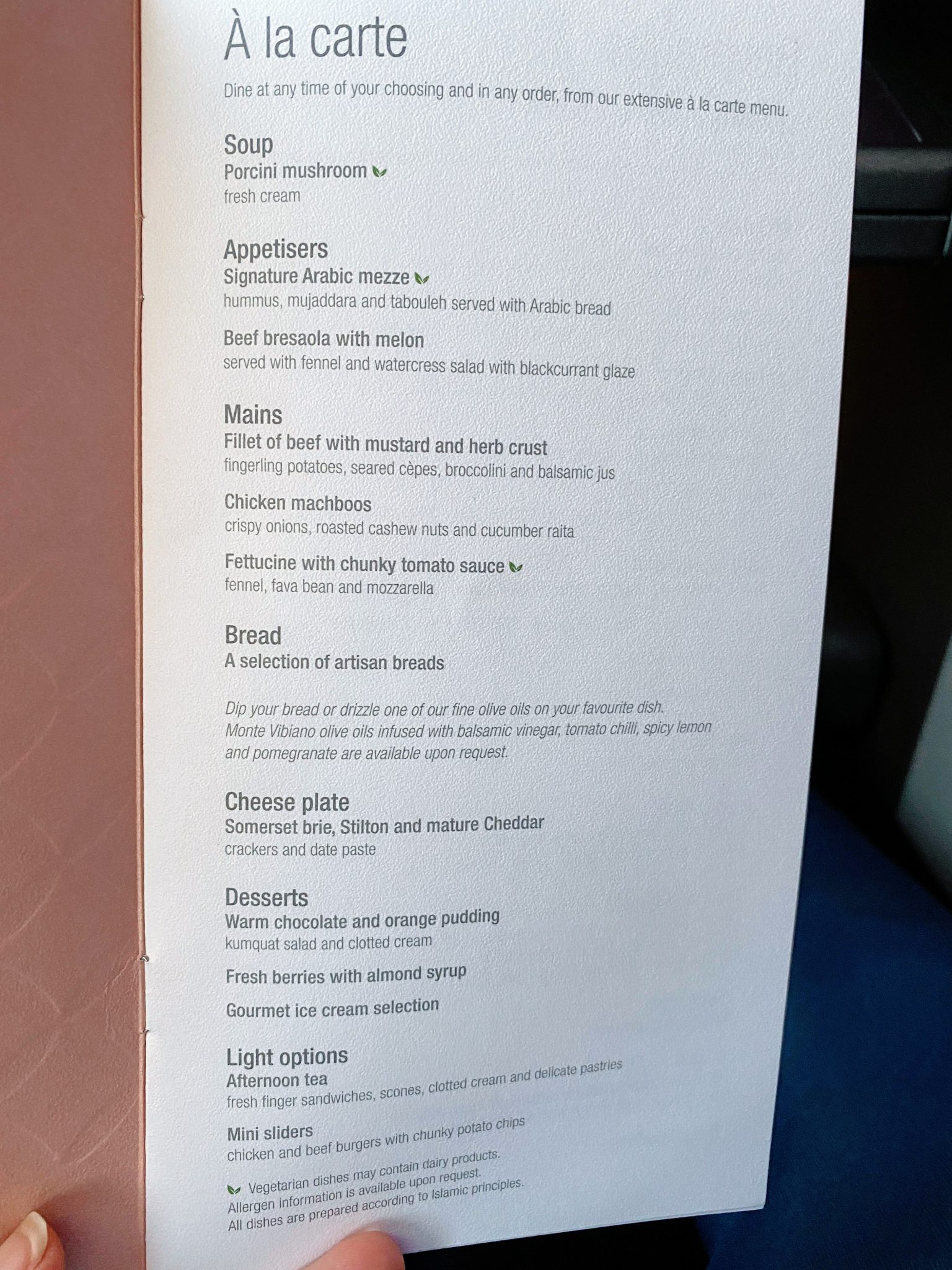 Before take-off we were handed the menu and wine list: