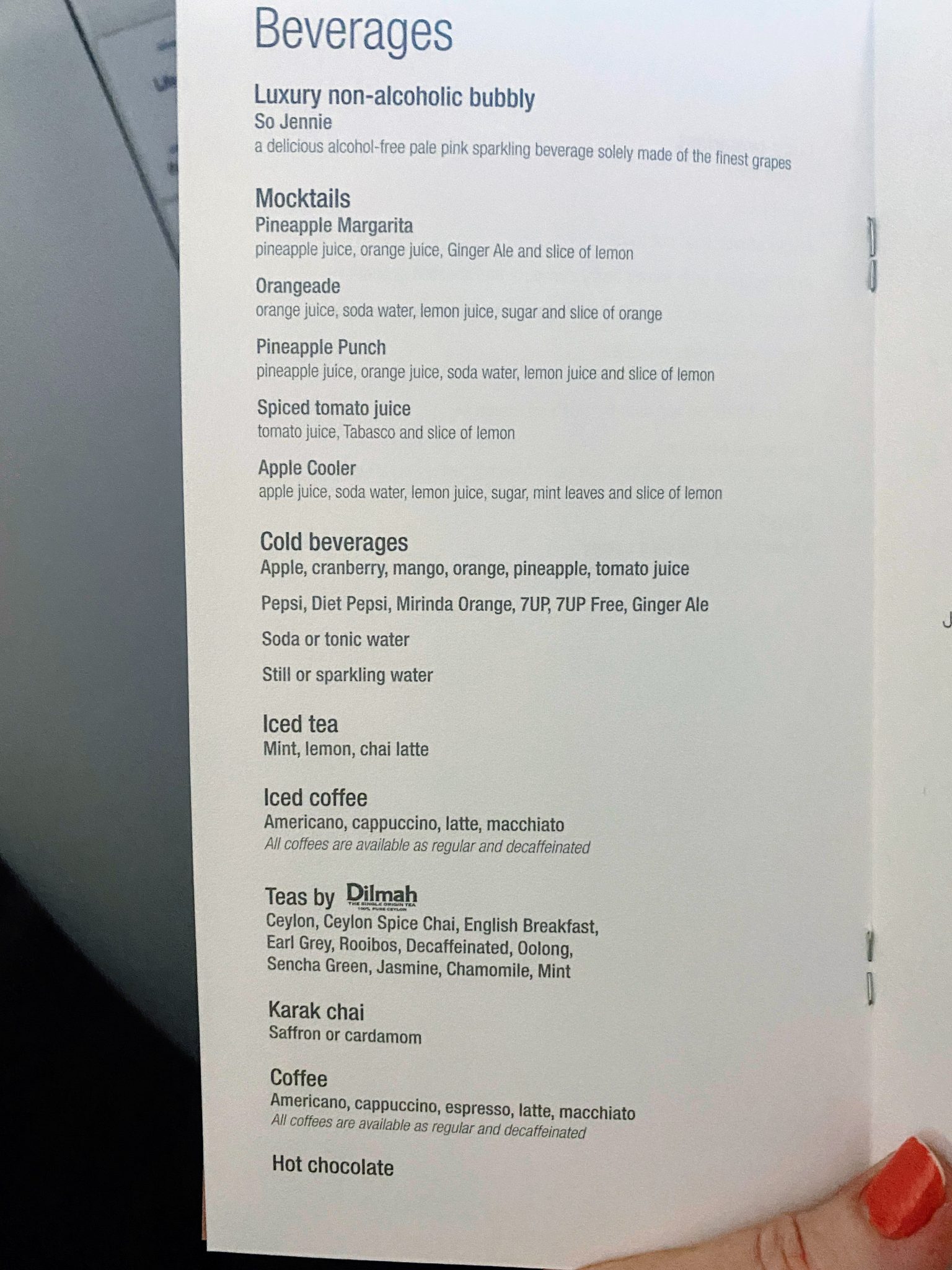 By now, I had cottoned on to the lack of refills and long waits so I asked for a very large glass of cognac. I found this very average but a standard level for business class. On the flight home, I tried the flat white cocktail which was quite creamy and not that alcoholic tasting.