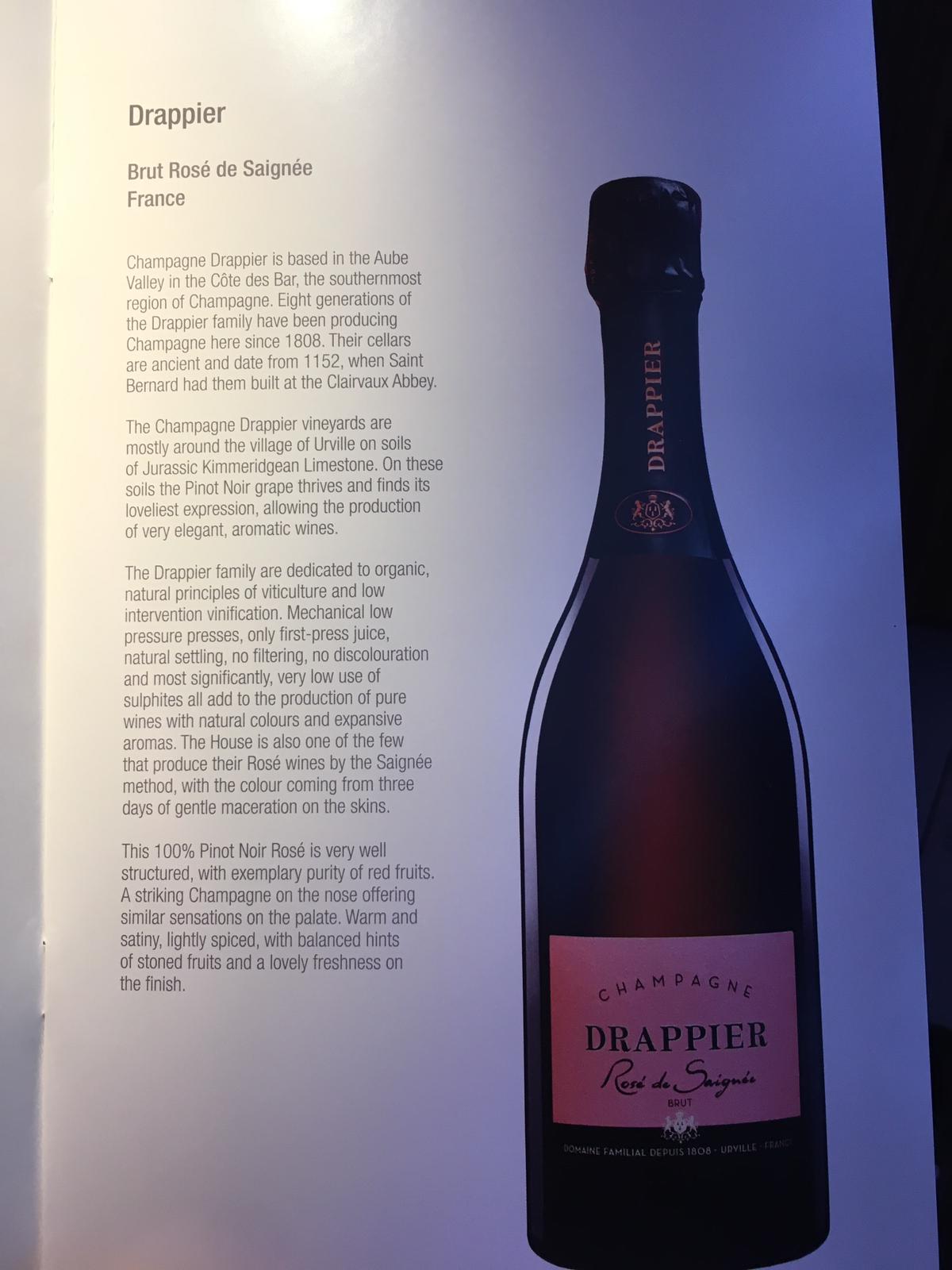 The crew member looking after me was delightful. She delivered my requests of Drappier Brut Rosé de Saignėe Champagne, Cold Towel and small PJs. While the aircraft was taxiing, she started to take my post departure drink and half of the dinner service order. We were at the runway holding point before she scurried away to her seat!