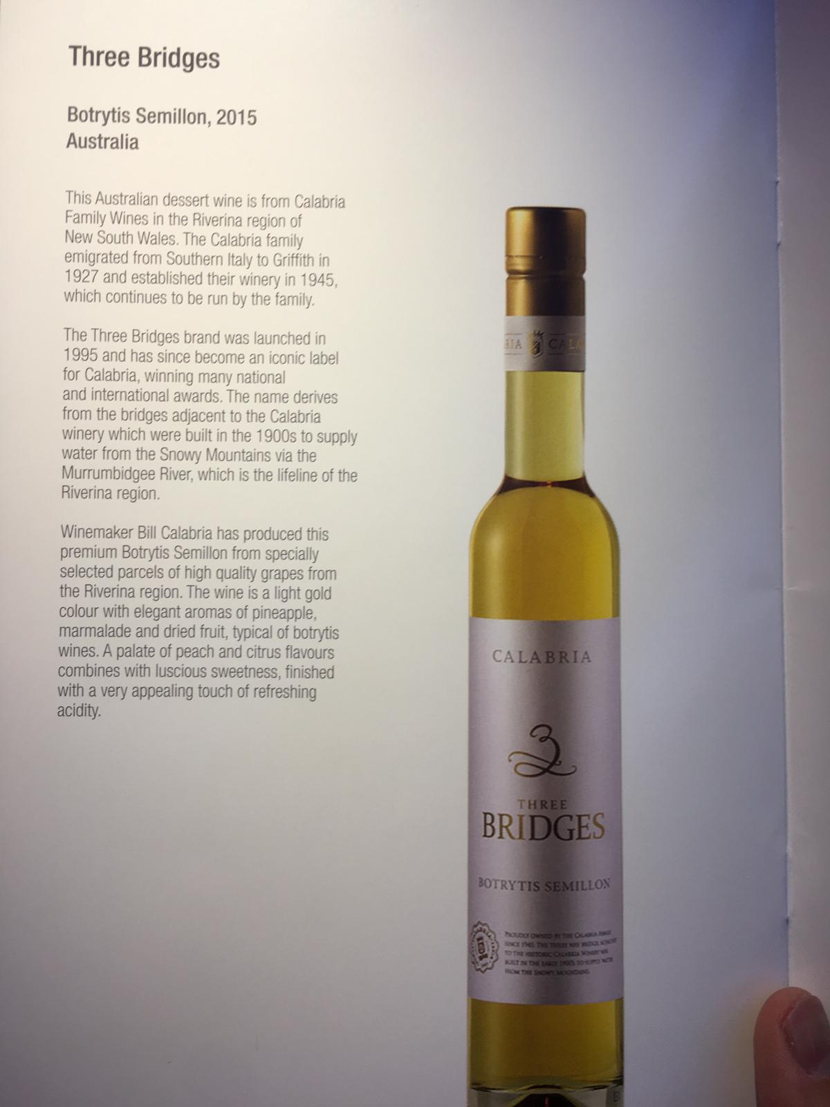 I then opted for the cheese plate which was nicely presented, with dried fruit and a decent selection of quality crackers and dark rye bread. I particularly enjoyed the pesto thins. The quince paste was revoltingly stale. I accompanied this with a glass of the Three Bridges Botrytis Semillon 2015 from Australia. I felt this went superbly with the cheese course. I enjoyed a second glass!