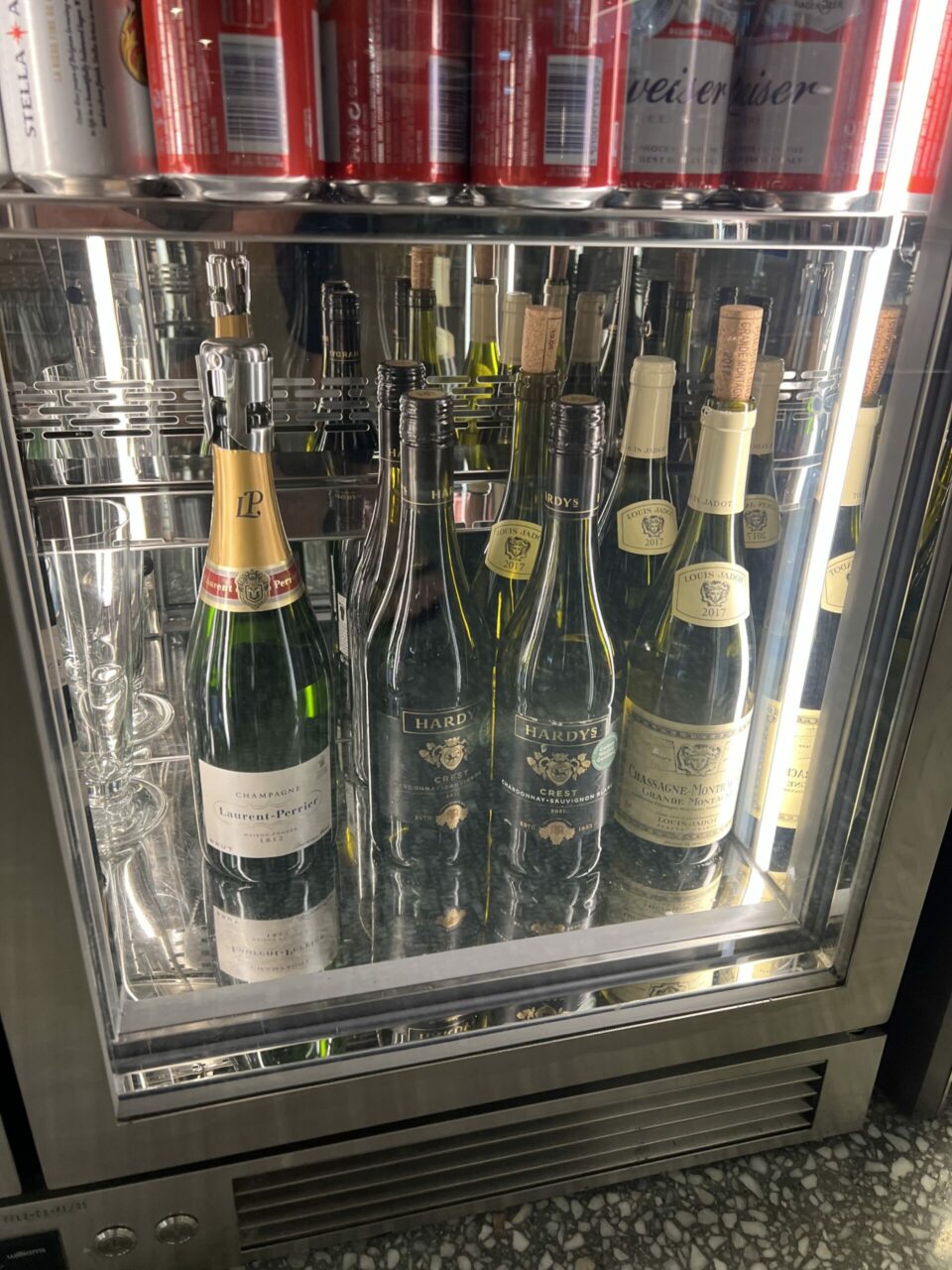There were a couple of bottles of white wine in the fridge along with some beer, but for most of the alcohol you needed to go to the bar or order it. There were plenty of mini San Pelegrino and still water bottles lined up if you needed to rehydrate.