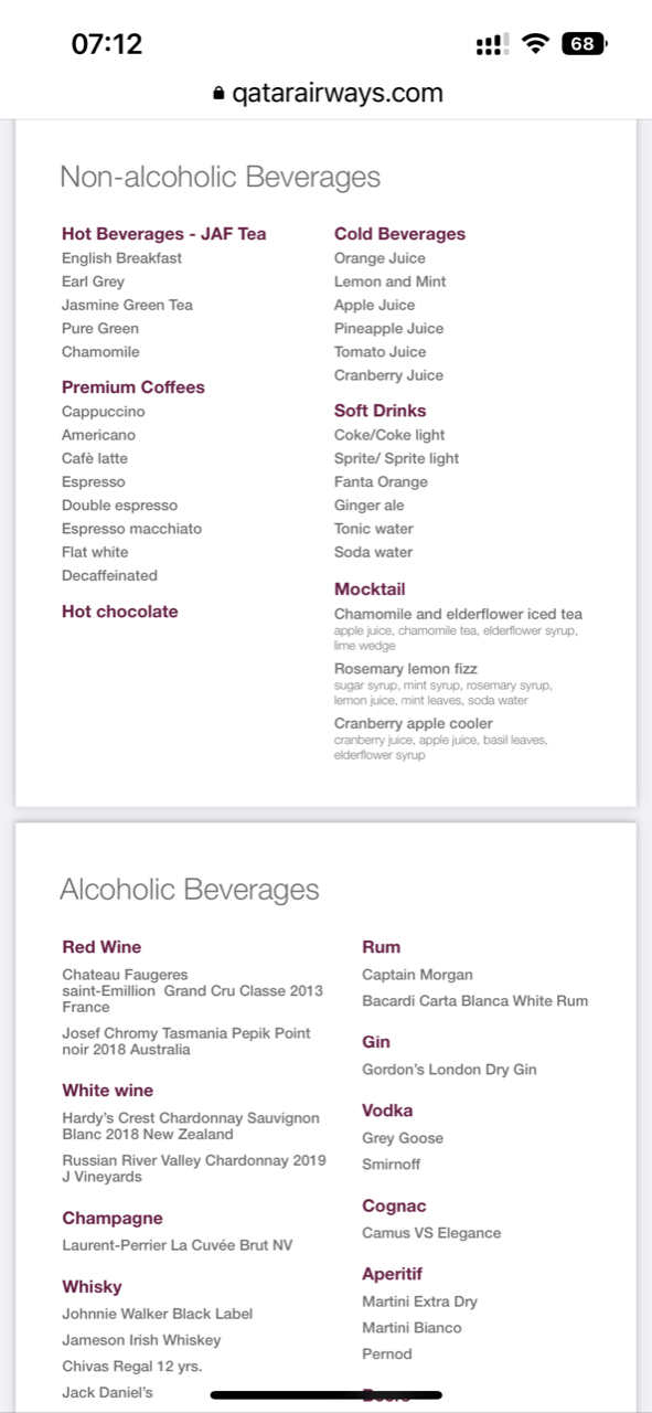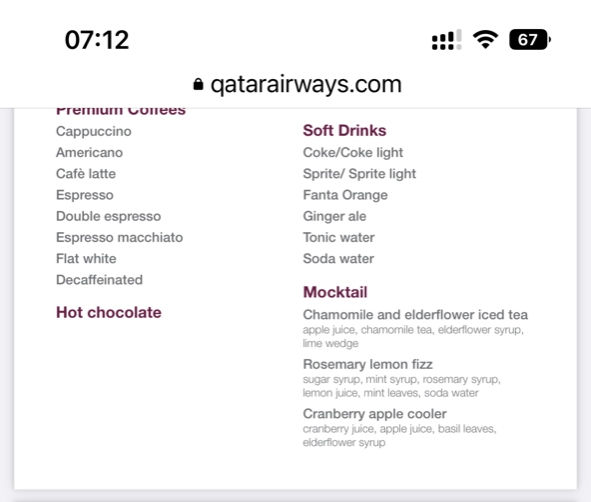Here is the menu available via QR code for drinks: