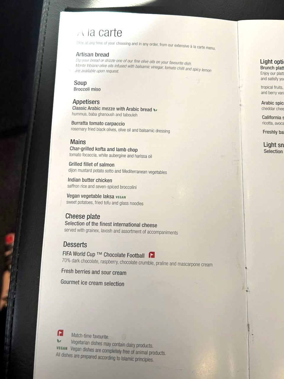 You can read my full review of the Platinum and Gold lounges here. As a quick summary, there was a good selection of wines and champagne available along with both a buffet and food to order. There was a separate dining area and then a bar and lounge section. I thought the food selection was not very different in the Platinum lounge than you would get in Al Mourjan, and even in the Gold lounge, the food was almost the same.