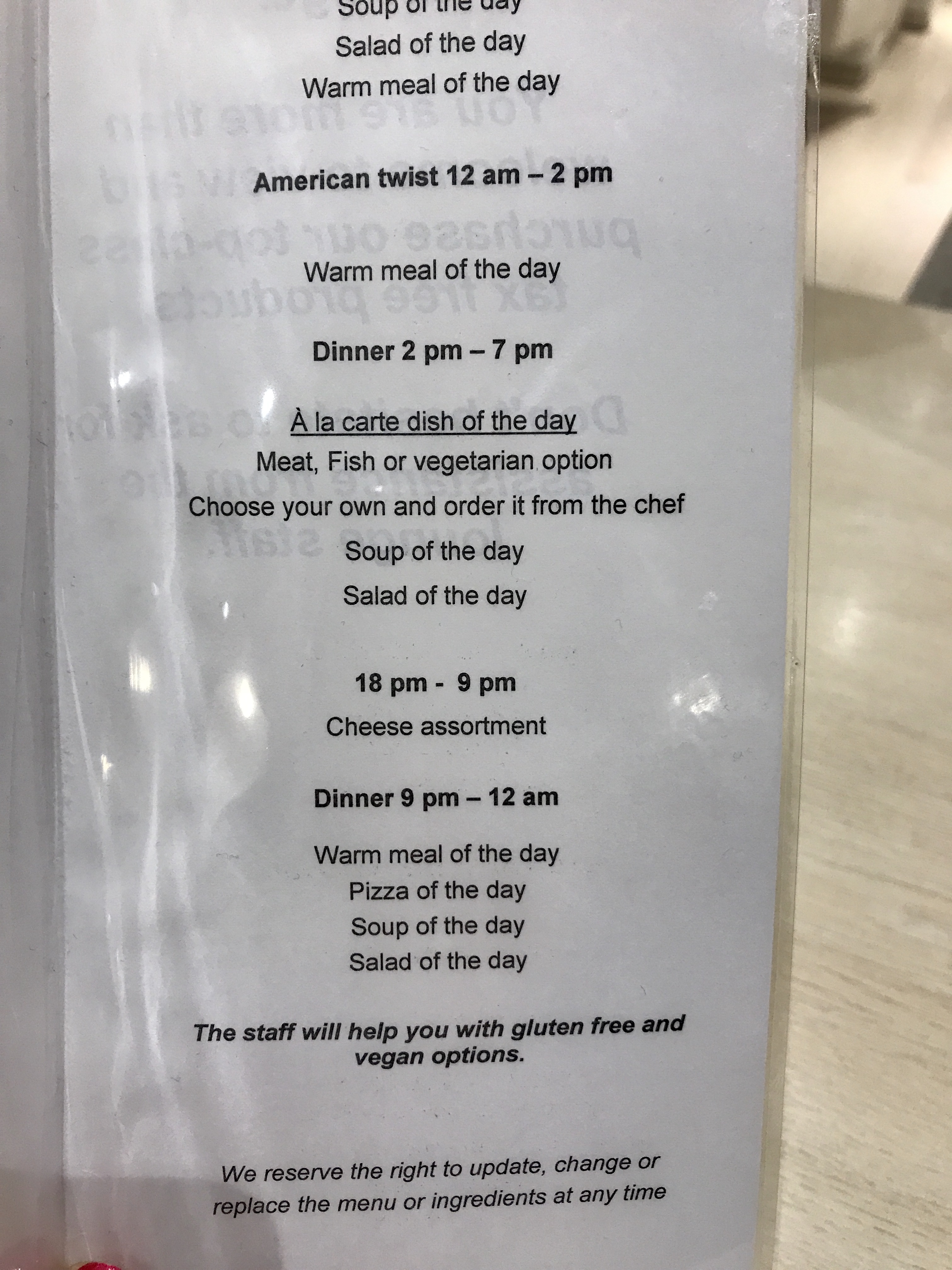 The menu had two sections with the main a la carte section and then a light breakfast choice too.