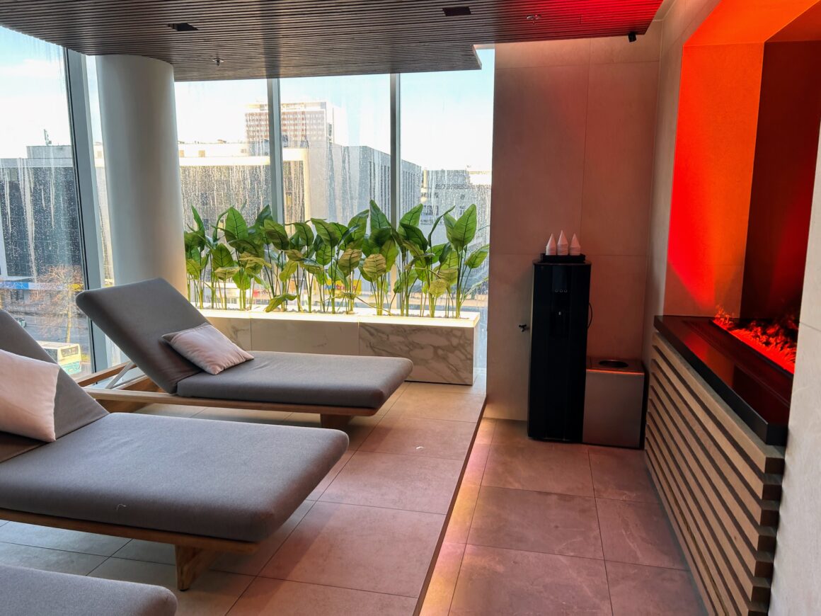 You could then sit and relax in either the sanarium which was just a pleasant temperature rather than hot or in the relaxation lounge with its clever fireplace effect.
