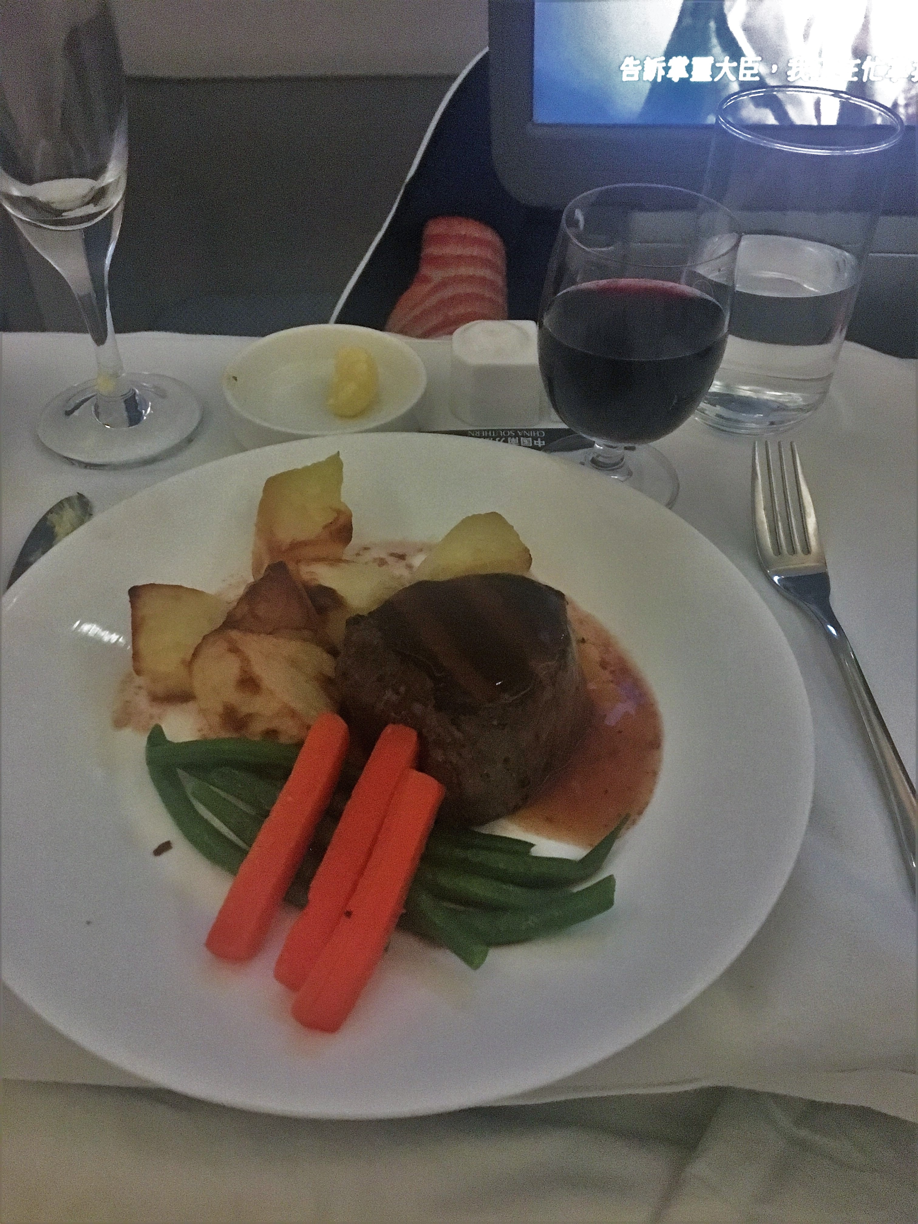 As the business cabins were smaller in size and with nearly 1 cabin crew to 4 people, it felt like I was really in first class. Not ONCE did I have to call the cabin crew because they always seemed to know when I needed something… such as my bed made up, more water, a snack etc. and my glass was never empty be it wine or tea. I honestly felt like royalty!