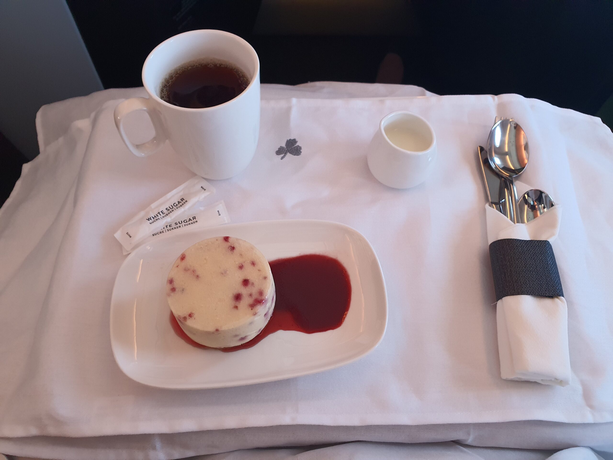 For the next course, the options were medallions of Irish beef, fishcakes with chilli noodles or roast parmesan chicken breast. I ended up with the chicken, as they had run out of beef medallions by the time they reached me. This seemed to be a recurring theme, as for pudding they had run out of cheese boards and only had the white chocolate and raspberry cheesecake left (luckily, I had, in fact wanted the cheesecake). Yes, it’s a first world problem, but given how much the tickets had cost I did feel a bit disappointed as given there were only a few paying passengers in the cabin, it was a little unfortunate not to be able to have your first choice. I also think that if the staff must decline someone’s choice in main course, it’s good service recovery to check with them which pudding they prefer and ensuring they receive their first choice for that course.