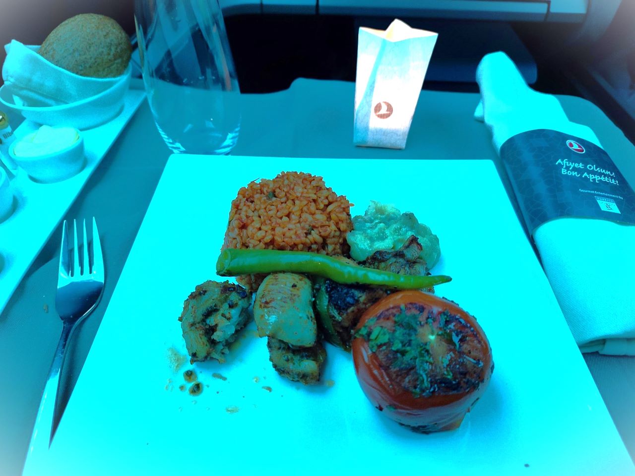 The Amsterdam-Istanbul sectors were operated by their A330 aircraft, which featured a 2-2-2 configuration. Not really much to add that’s not known about this configuration it’s pretty dated but does offer exceptional legroom and feeling of space. The food offered was more than adequate for the length of the flight.