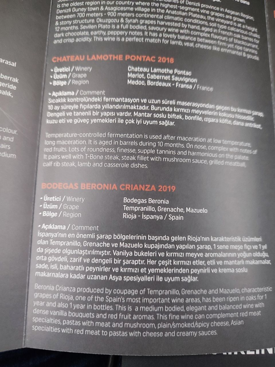 Not sure if it’s a cultural thing relating to the serving of alcohol, but it left us very disappointed in the level of customer service or the lack of it. It certainly felt that all the crew wanted to do was to serve the meal in double quick time and get the cabin light turned down so that they could themselves rest. All in all, it is a very disappointing level of service on the soft side of the product, when we had been led to believe that the food was one of Turkish Airlines’ strong points but alas it wasn’t in our experience and would say it was only worthy of a 1 out of 5