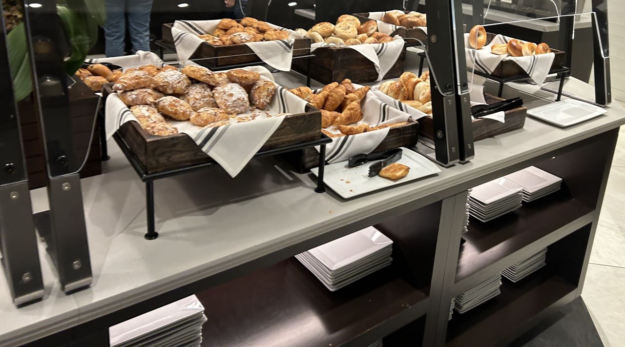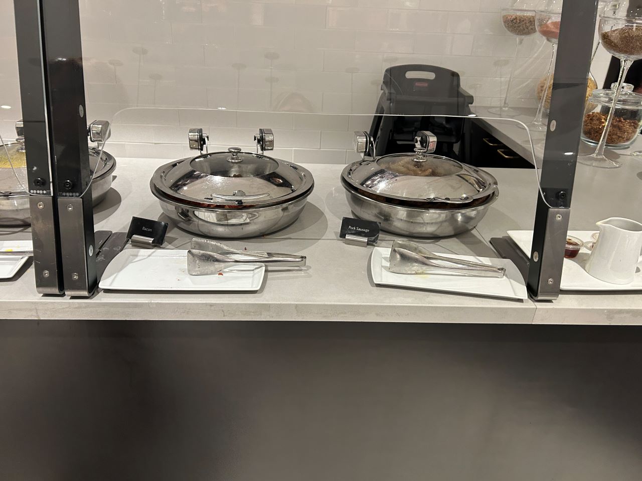 Hot items included scrambled eggs, egg white frittata, breakfast potato hash, sausage and bacon. In the cold section I was pleased to see they also had smoked salmon. Fruit, yoghurt, cereal plus bread and pastries were also available.