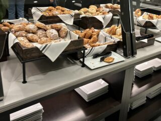 Hotel lounges in the US are quite different as they do not tend to serve free alcohol. However, they do have free food and freshments. The M Club was on the lobby level of the hotel and was staffed by friendly and helpful desk agents at the entrance. This was very definitely the largest lounge I had been in, but there was never an issue getting a seat, even during evening canapes.