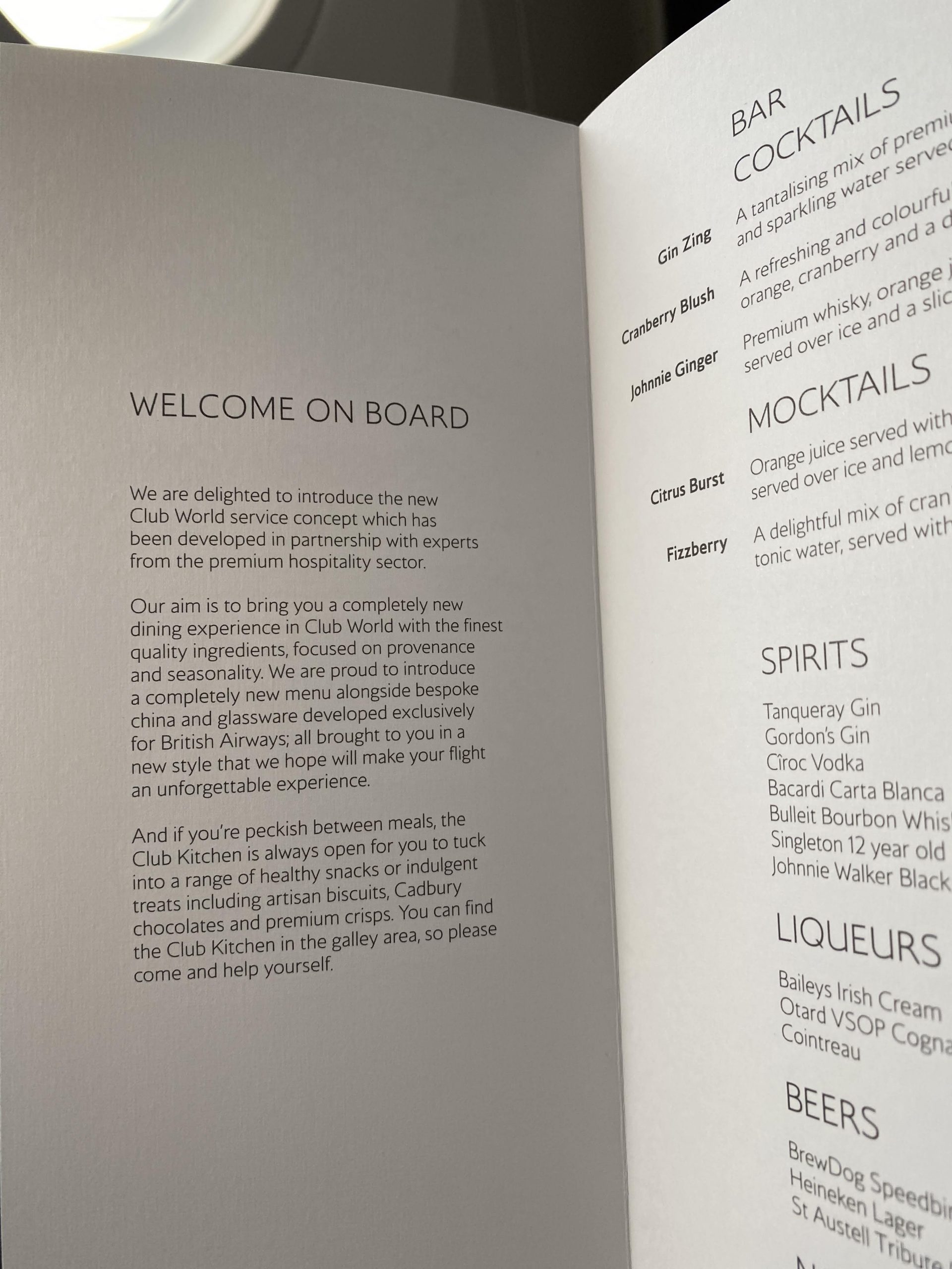 British Airways Club World Food and drink