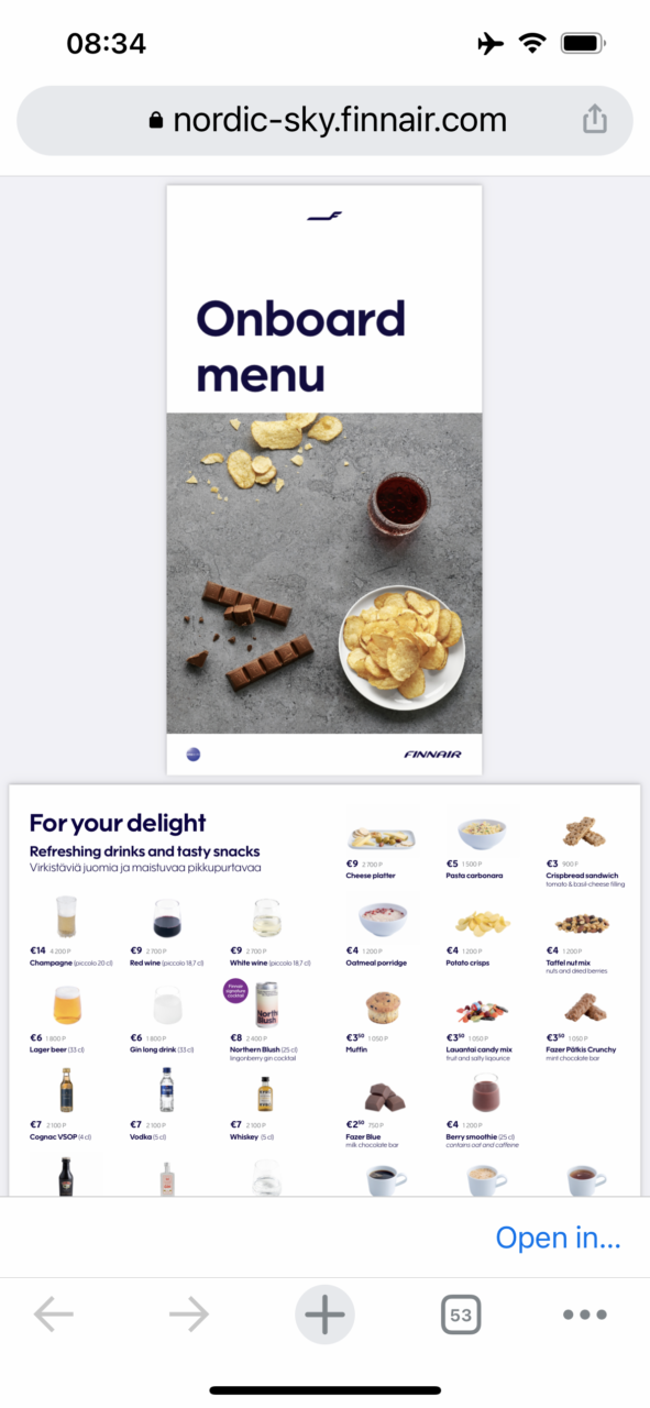 If you want something else, you can buy it on board. The full menu can be seen through the onboard wifi, but you don’t need to pay for Wifi to see the menu. There is a reasonable choice but not much fresh food as it must be preordered 24 hours before from London or 7 hours for the return from Helsinki.