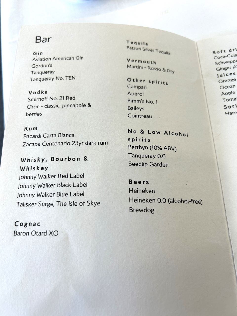 Like the Concorde room, they serve Laurent Perrier Grand Siecle champagne and wines that are served on board in First. Here is a full look at the spirits: