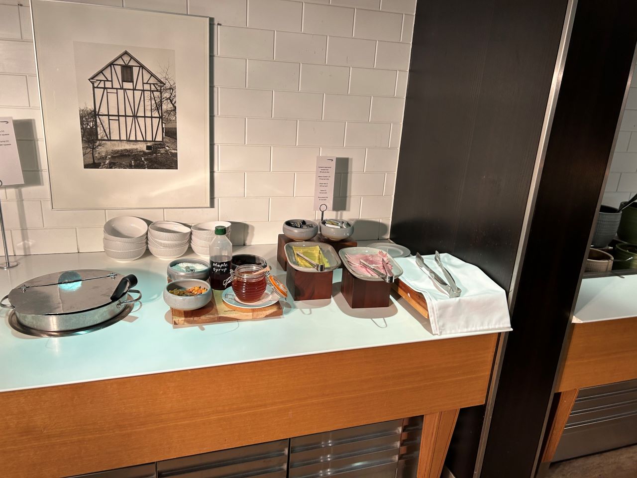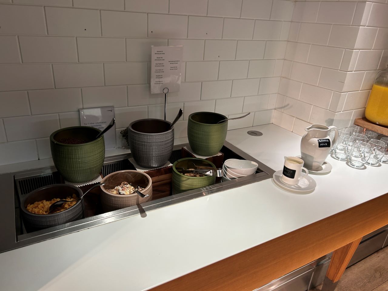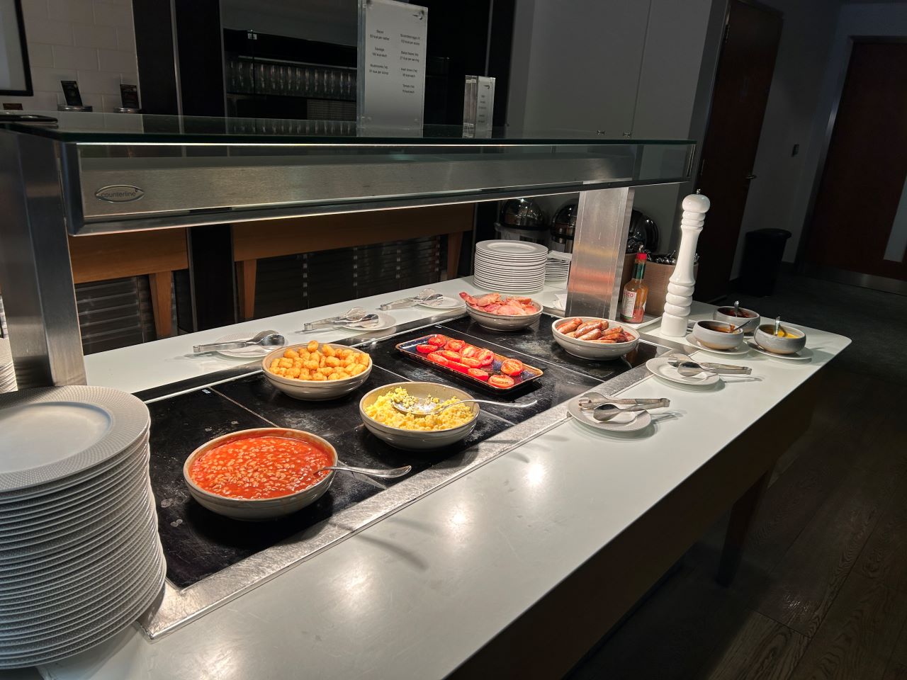 The buffet has the same as you would get at T5 in Galleries First: A Full English, pastries, fruit, yoghurt, meats and cheese porridge and cereals.