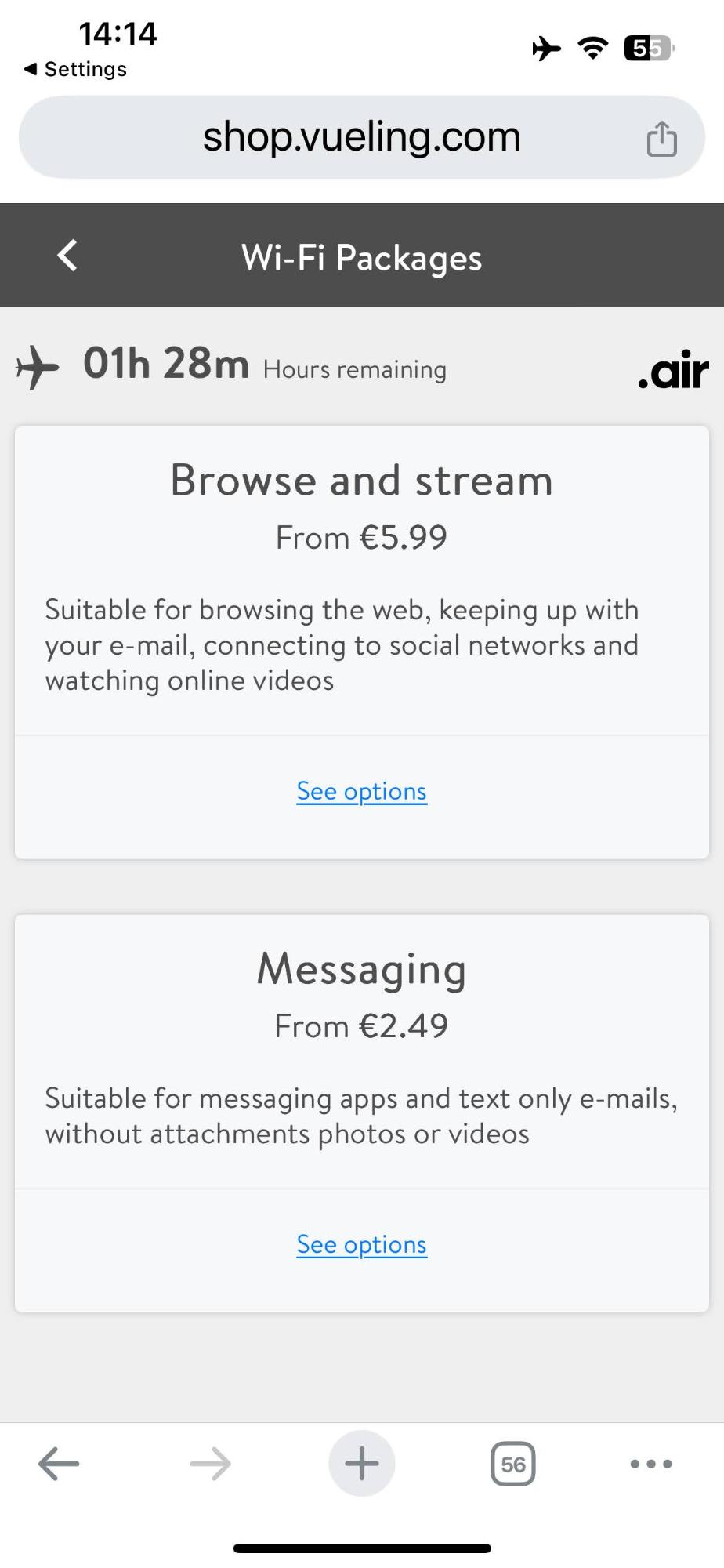 There was Wi-Fi, which was available at a reasonable cost of €5.99 or €2.49 for messaging. Although on BA you get free messaging if you join the Club.