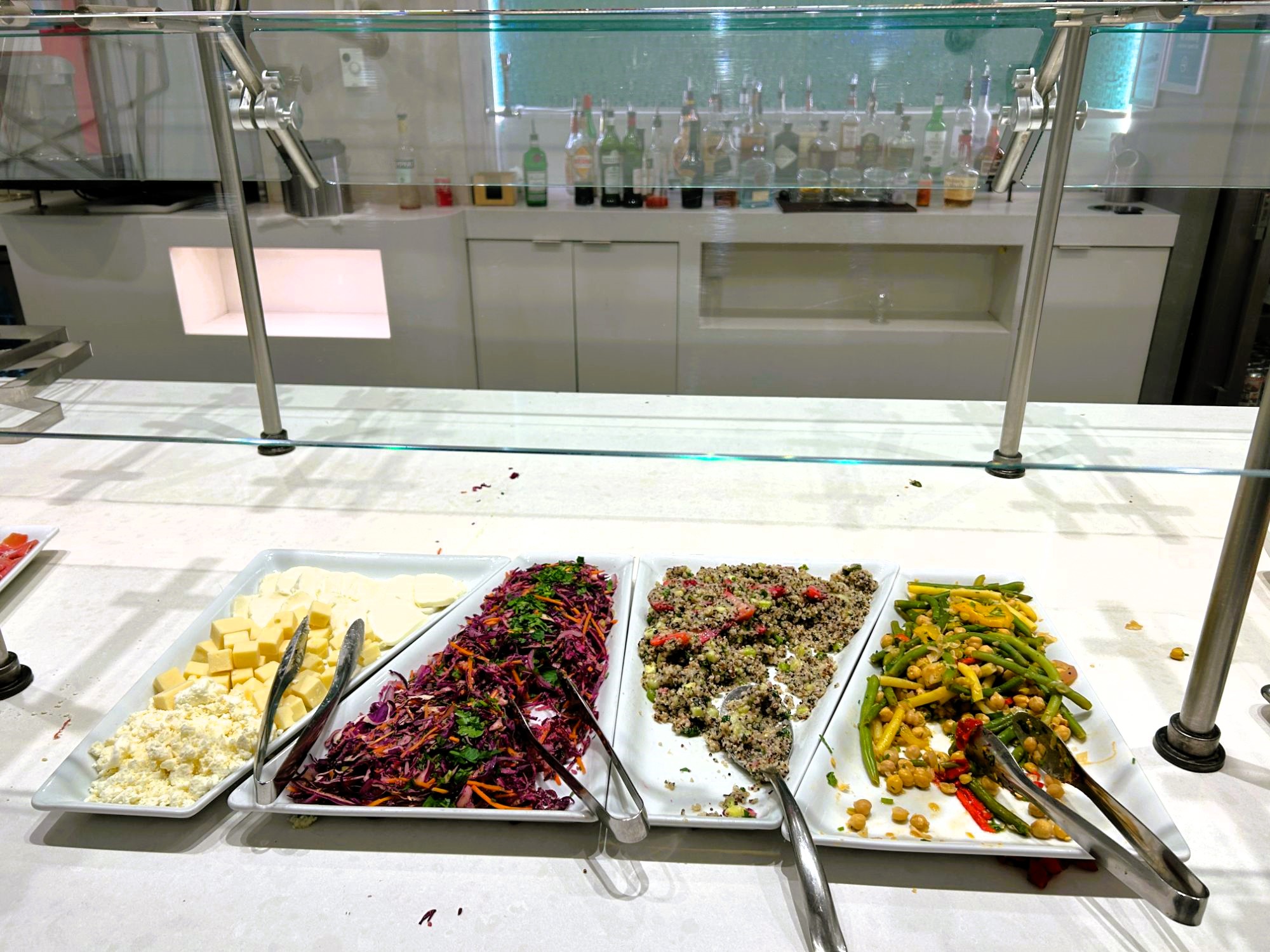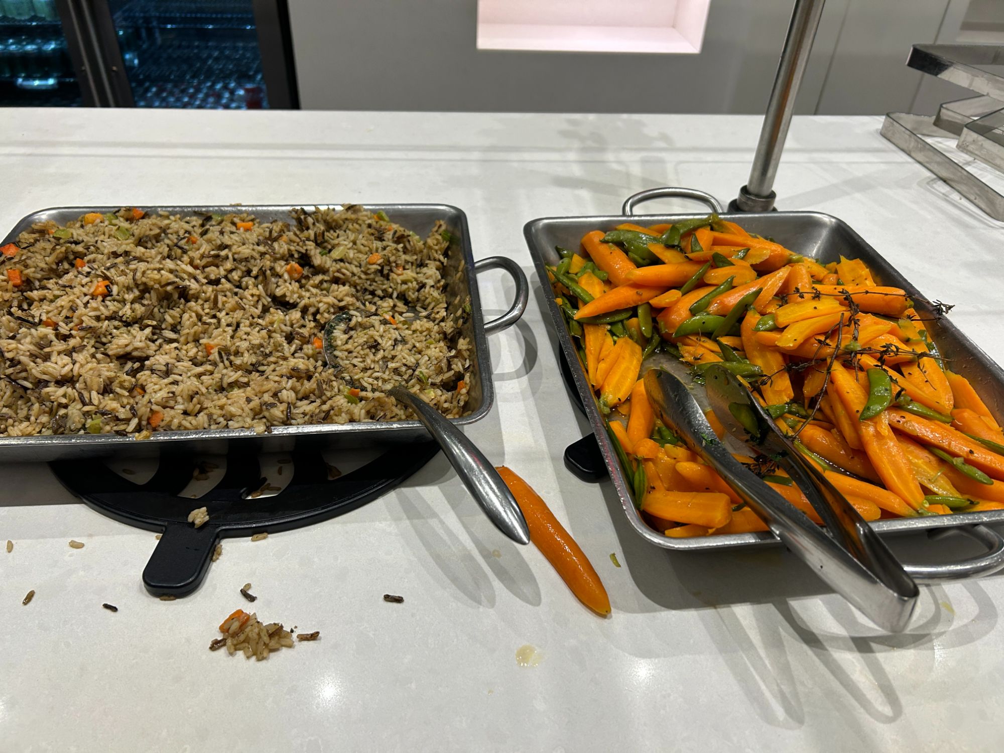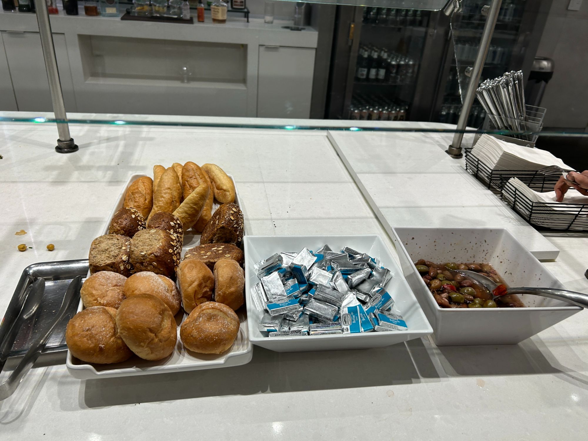 As you go into the lounge, you will see the main buffet. If you want to eat but don’t want to order food, you will need to get the food from here as other areas of the lounge don’t have much food for self-service. There are good views of the airfield all the way along the lounge from the floor-to-ceiling windows.