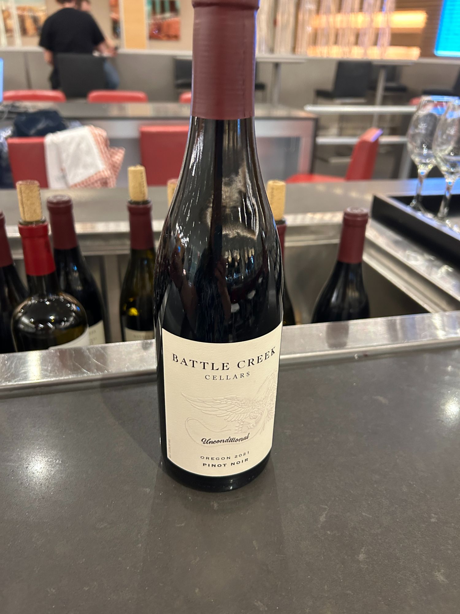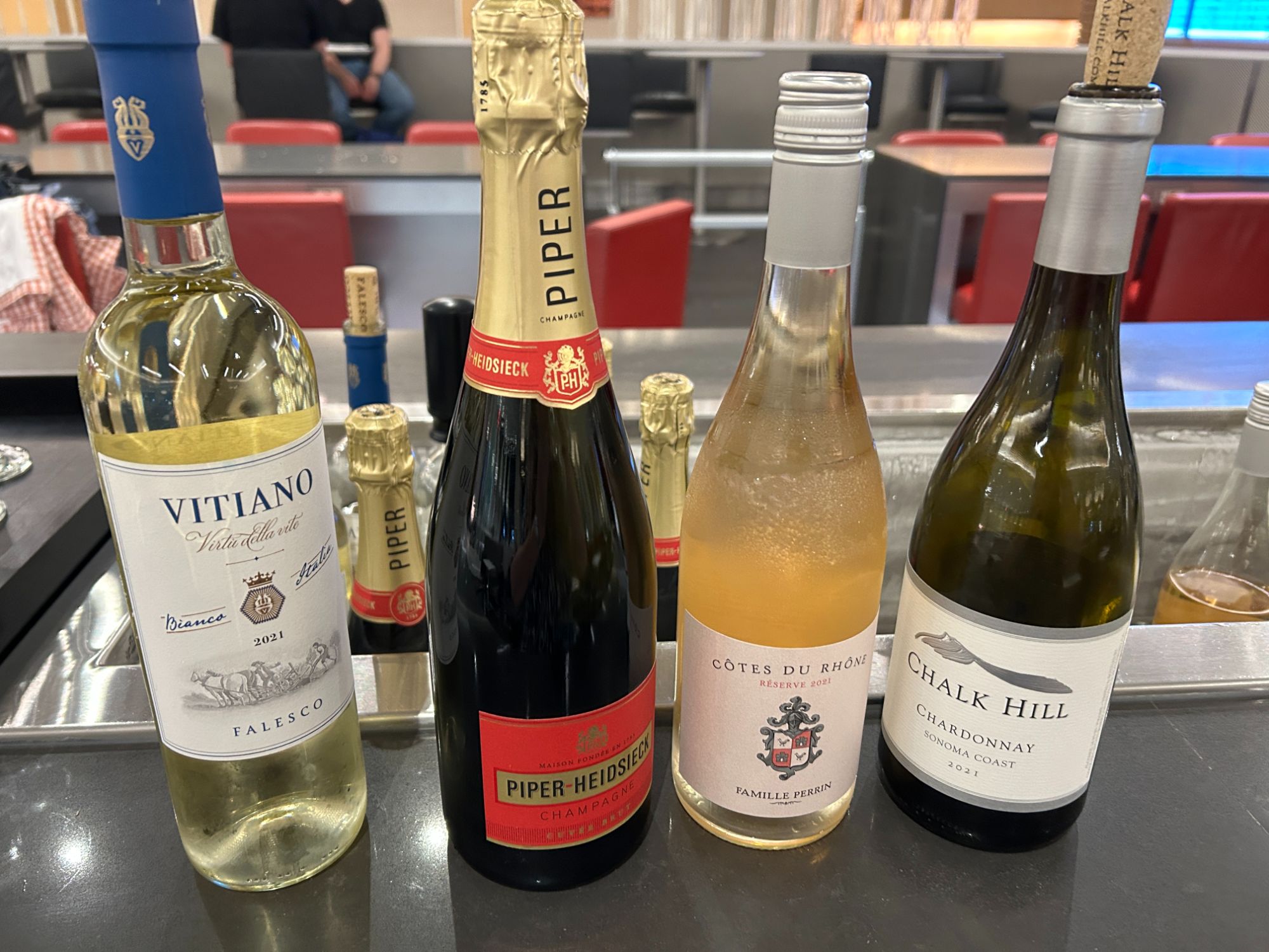 To the left of this is the self-serve wine bar. There is quite a bit of table seating in this area, and beyond these are some booths for working and comfy seats with views of the airfield. Like the other lounges, there were plenty of power points around for charging.