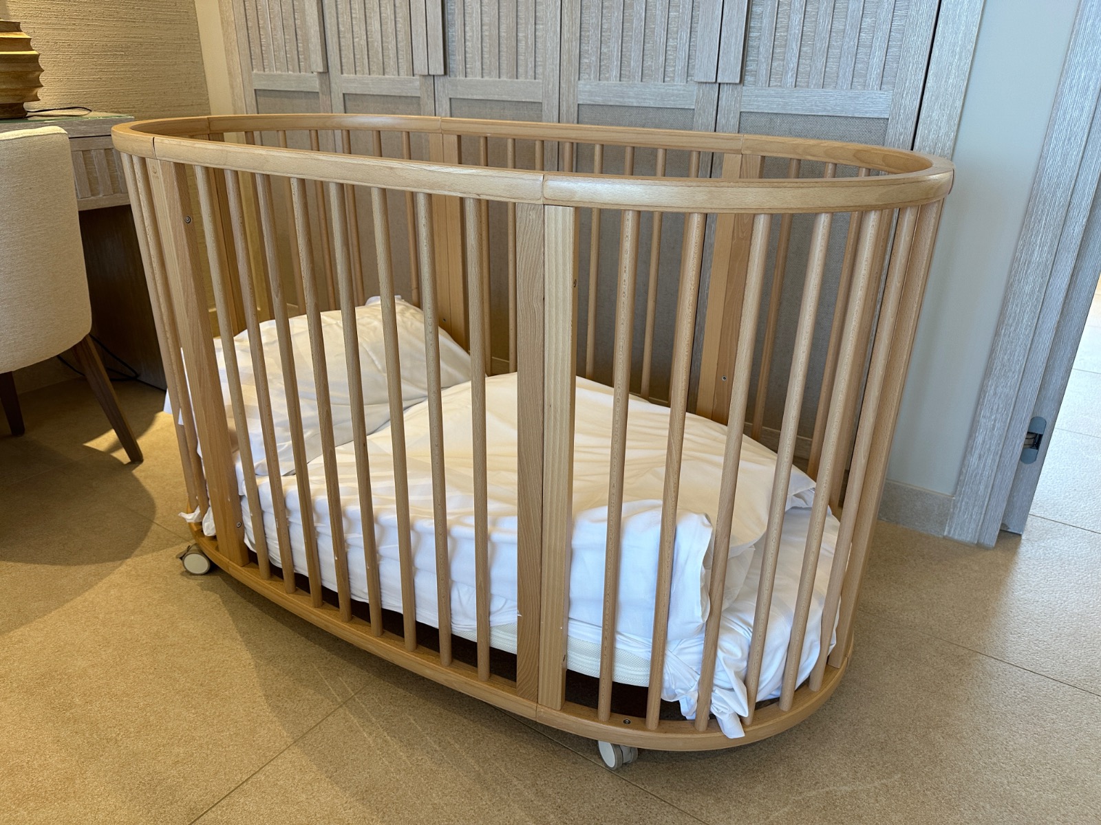 Prior to arrival we had requested a suitable cot which was in the room when we arrived. It’s worth mentioning the quality of the cot and highchairs around the resort are top quality. The highchairs at the restaurants are the exact same one we have at home which are Stokke Steps. You can also request anything from baby monitors to bottle cleaners and ikos will provide them which is a huge plus for a family.