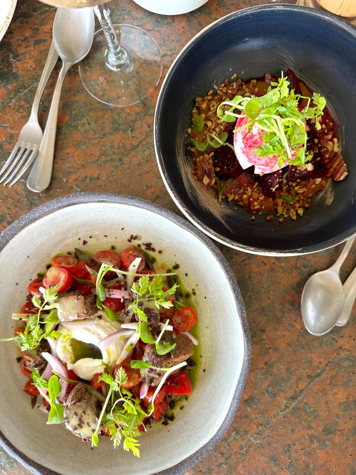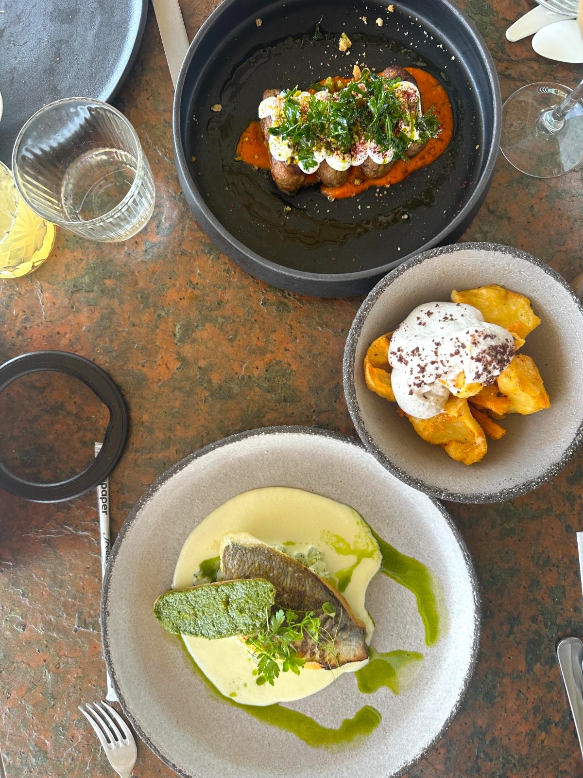 The menu is slightly similar to Ouzo but more refined. We really enjoy their mezze dishes to start, especially their Santorini plum tomatoes with sour feta cream.