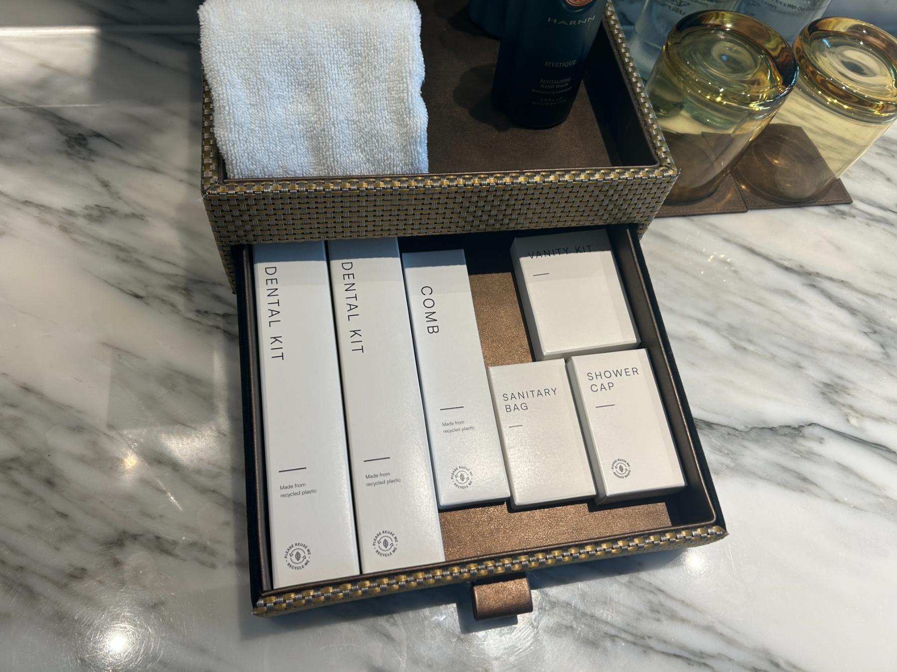 The toiletries were Harnn in bergamot and lavender, which had a pleasant neutral fragrance, and in large sizes, although not screwed down. There was also the usual large selection of amenities I’d expect in Asia, such as shaving and dental kits.