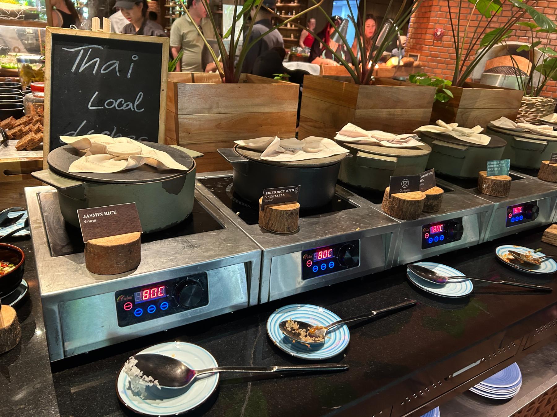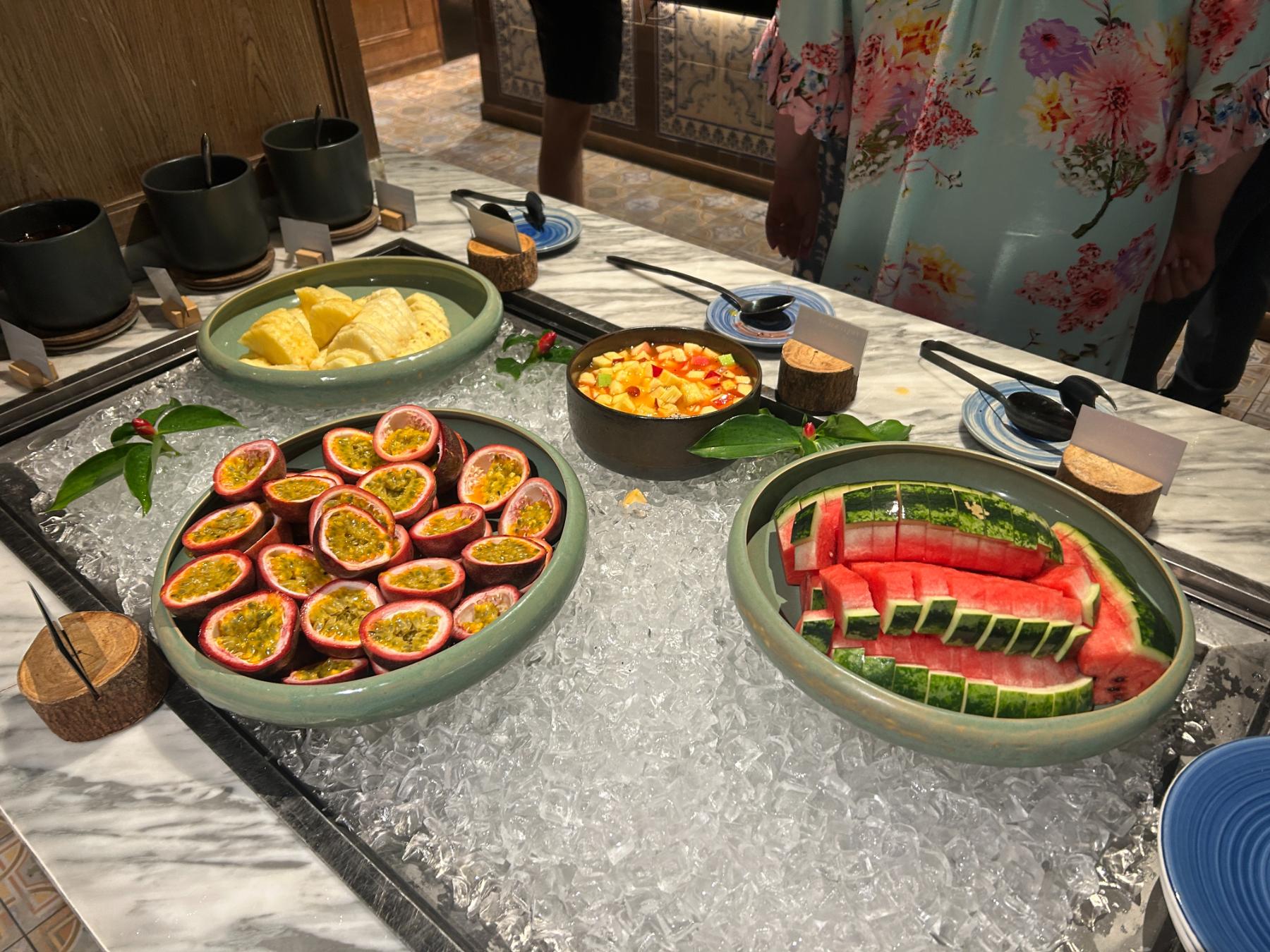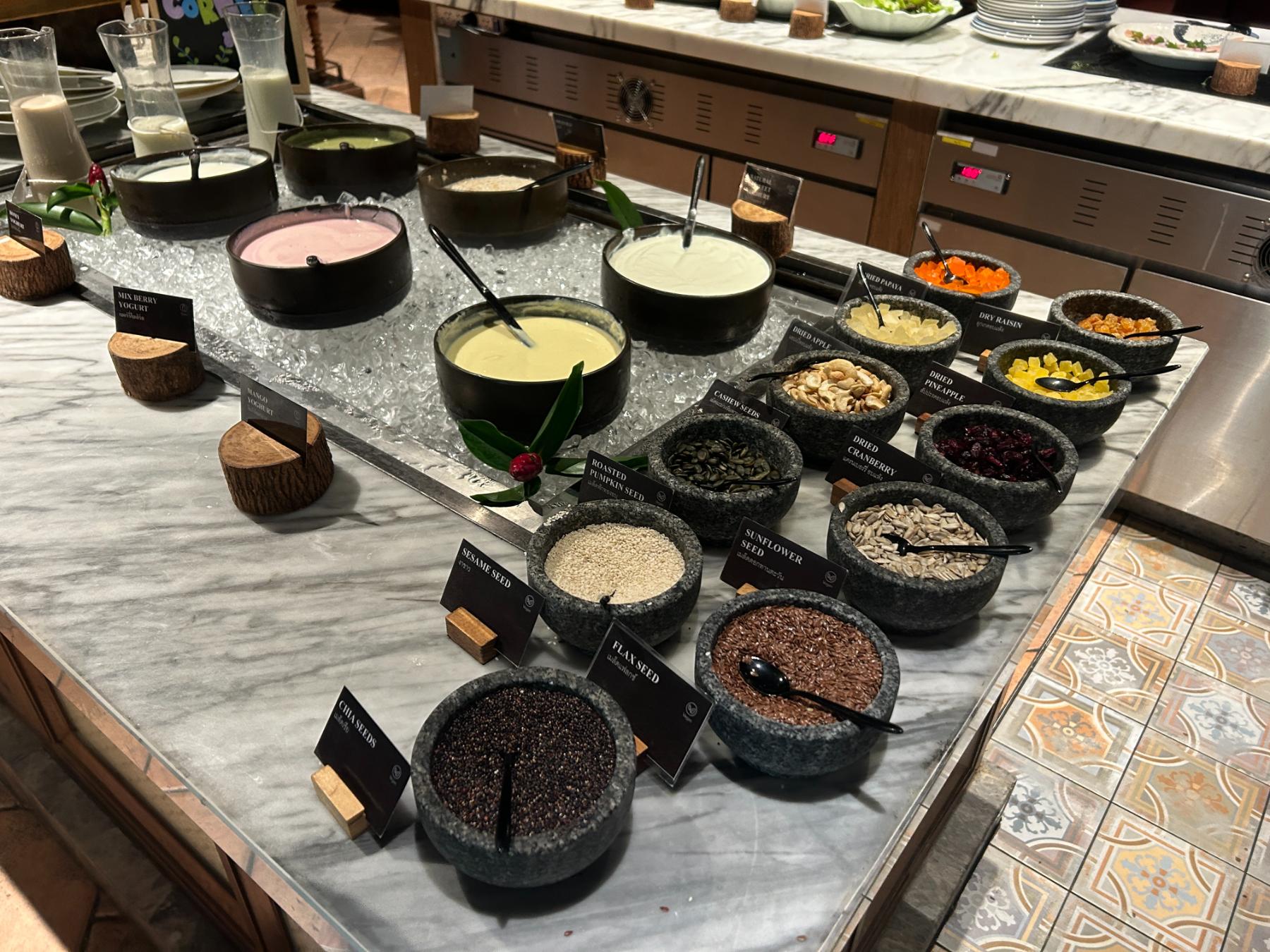 The fruit selection was very boring for Thailand, with just the bog-standard watermelon and pineapple plus passion fruit and fruit salad. If you wanted to be healthy, there were lots of options, such as yogurts, seeds, salad, etc. For those wanting to indulge, there were the usual cooked breakfast international items, meats, cheeses, pastries, and even smoked marlin!