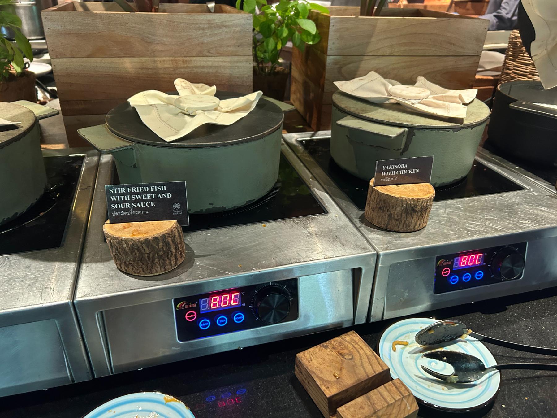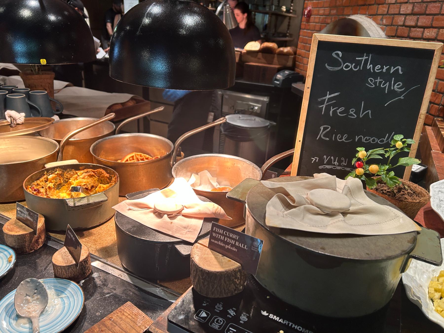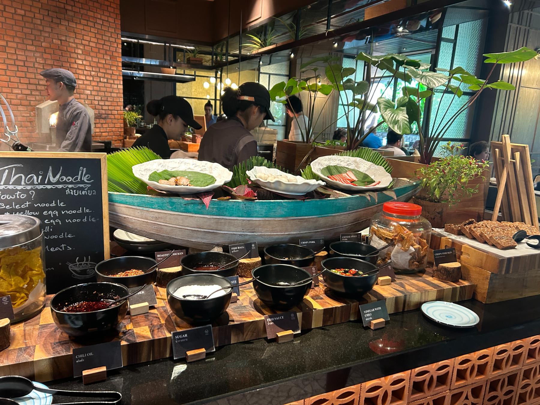 The fruit selection was very boring for Thailand, with just the bog-standard watermelon and pineapple plus passion fruit and fruit salad. If you wanted to be healthy, there were lots of options, such as yogurts, seeds, salad, etc. For those wanting to indulge, there were the usual cooked breakfast international items, meats, cheeses, pastries, and even smoked marlin!