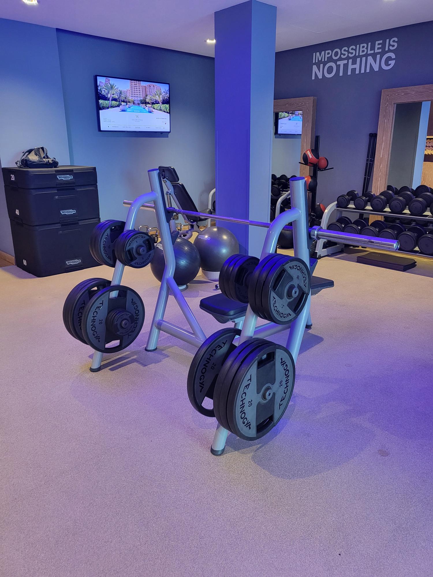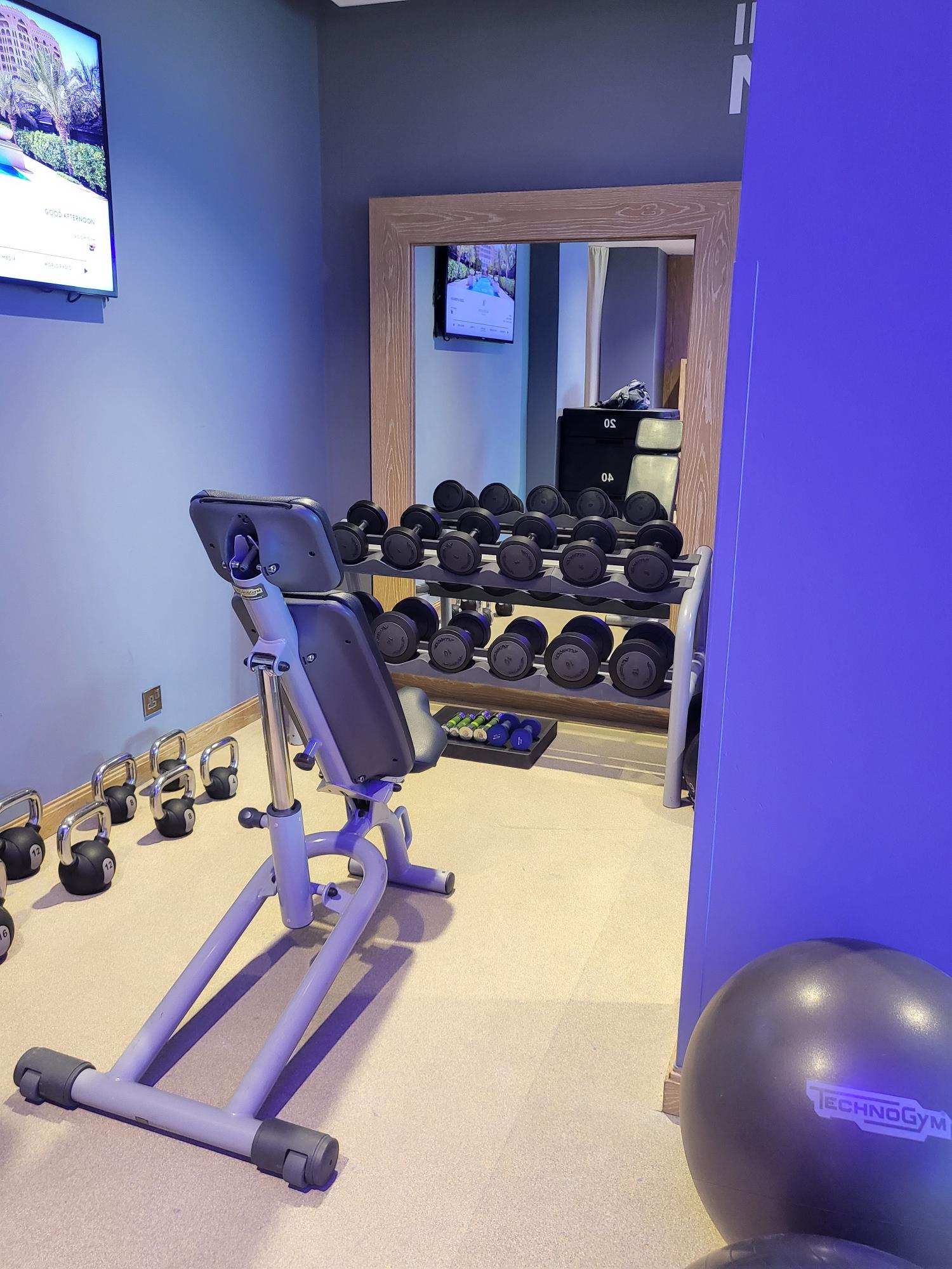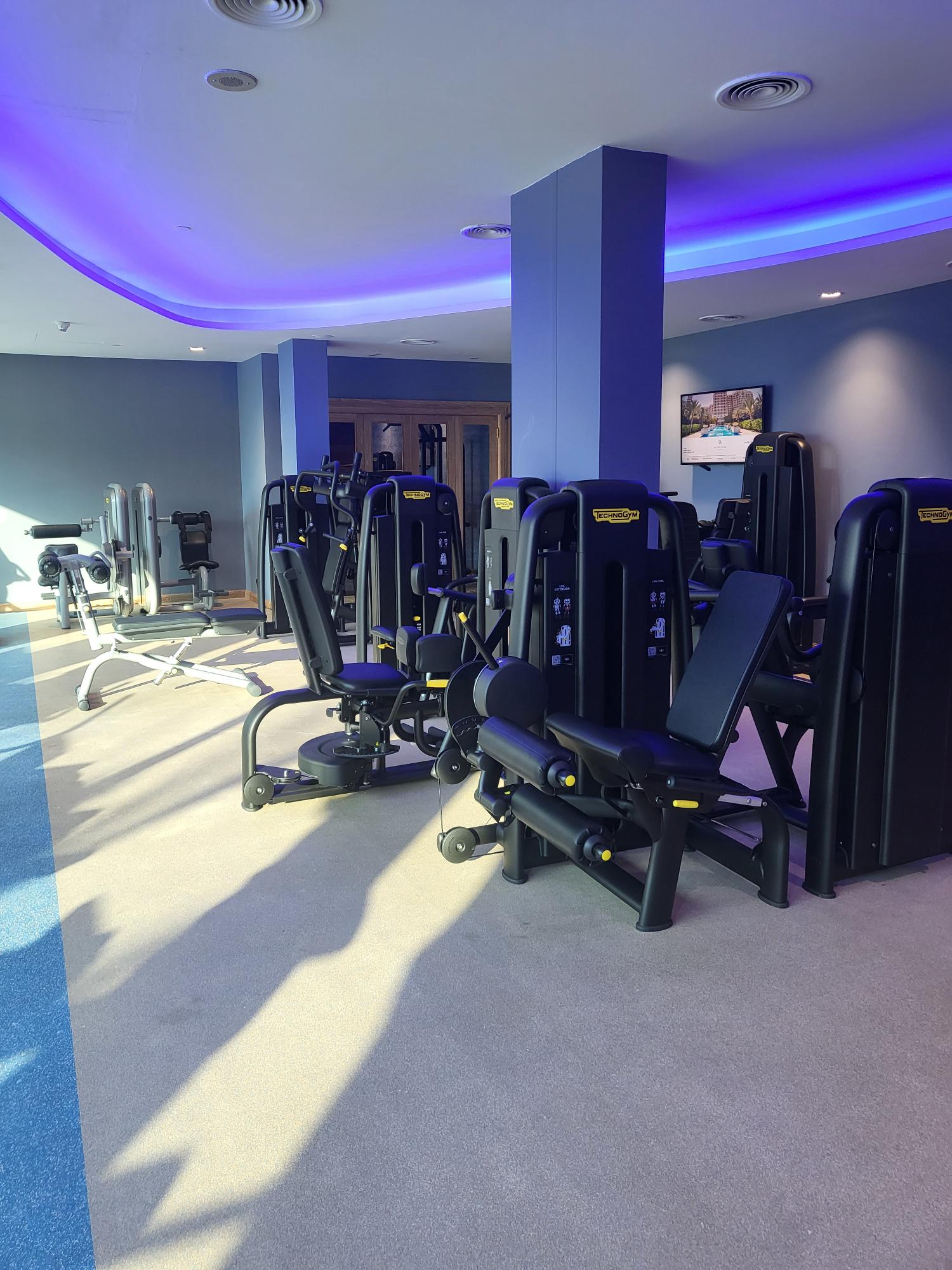 There is a large gym here with views of the grounds and a wide variety of equipment. Water and snacks are provided.