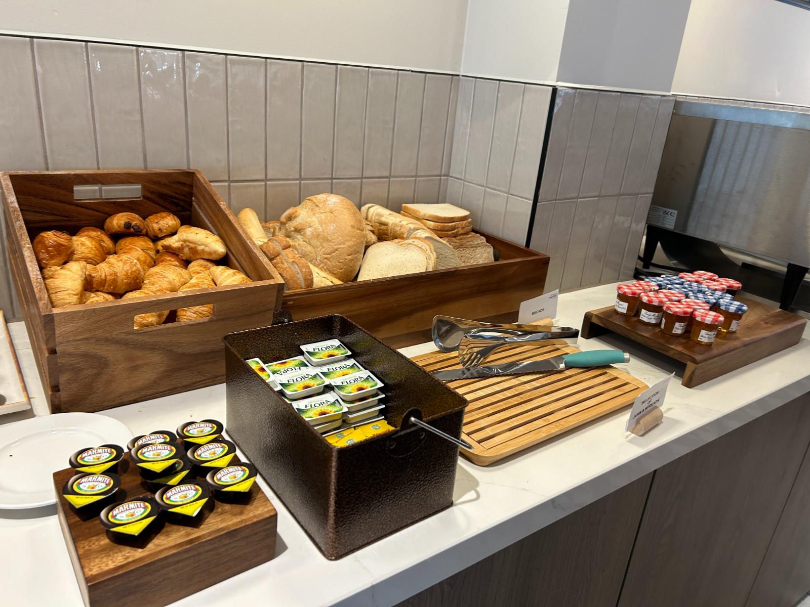You could sit anywhere, and there was a smallish buffet with all the basics. This included cold meat and cheese, pastries and toast, a full English and a muesli bar.