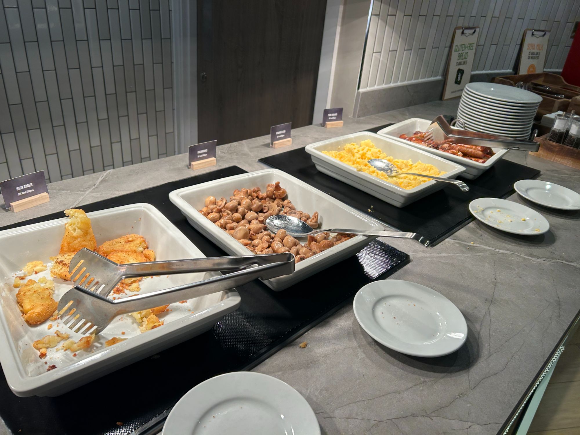 Breakfast is free for everyone in Hampton by Hilton London City hotel, which I always find funny that at more fancy hotels, you often have to pay, but it is free with these great value room rates. I wasn’t expecting much, but actually, it was pretty good, with plenty of choice. It does get busy towards the end, but there were plenty of places to sit.