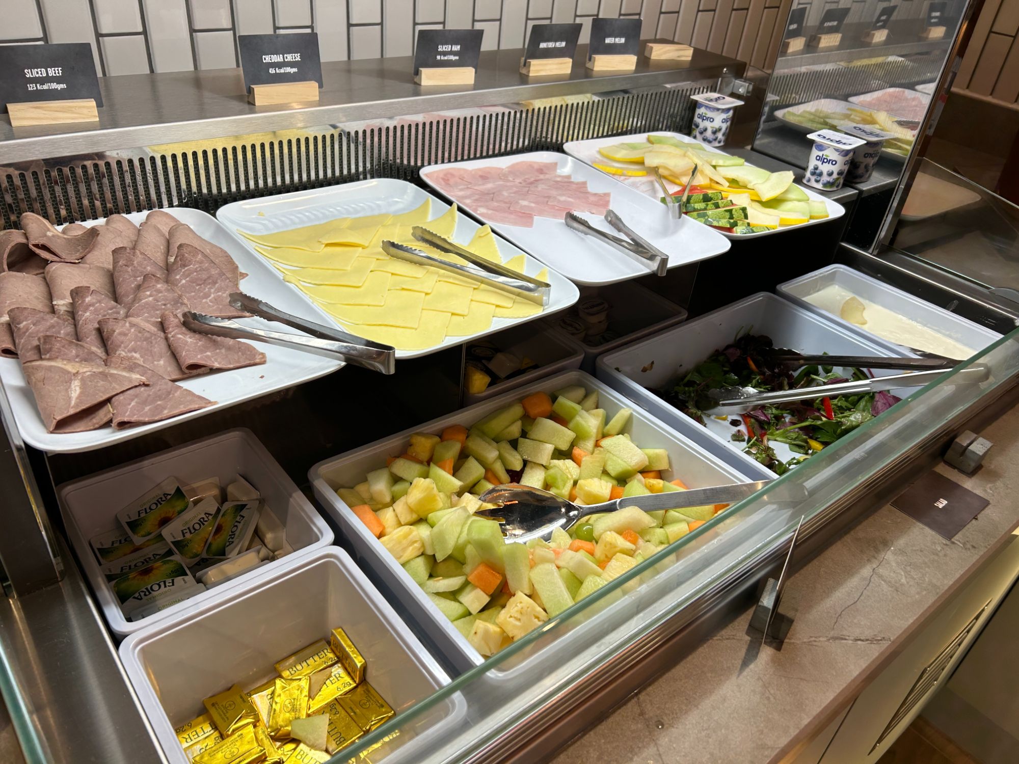 The buffet had a cold section with meat, cheese, salad, yoghurt and pretty decent fruit salad with melon and pineapple.