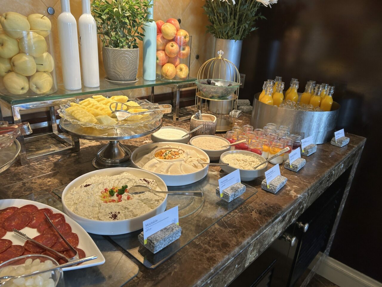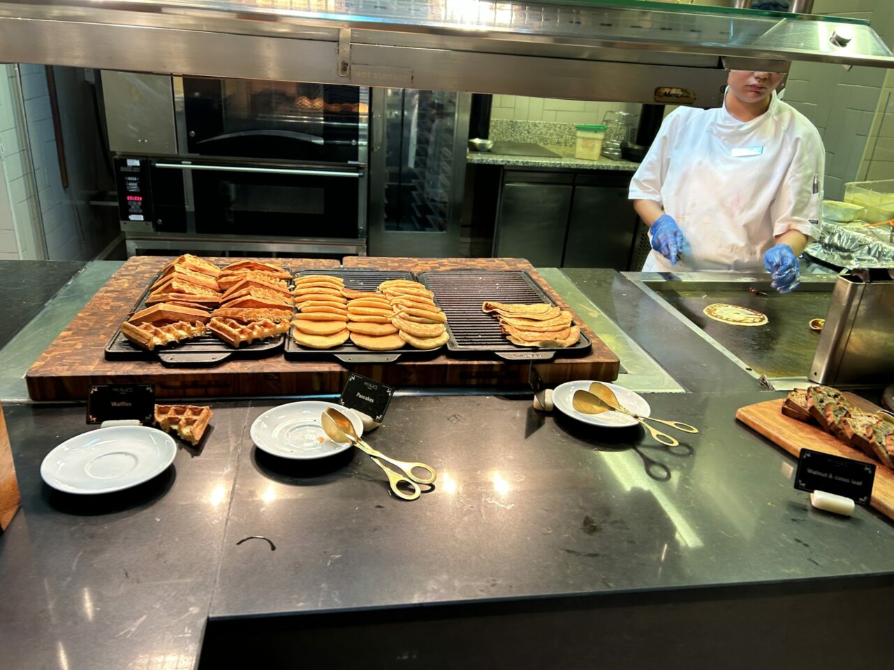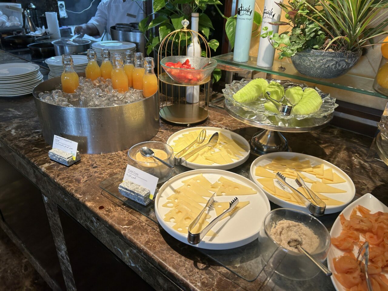 The selection here was vast and definitely up there with the best breakfast buffets in Asia. The stations were well laid out, so they were not crowded. There was everything from dim sum and Indian to proper bacon and sausages. Obviously, there were also the most regular types of food such as cheese, meats, Arabic breakfast including dips, waffles, two types of pancakes, pastries, fruit and a fruit juice station. I loved the mango juice.