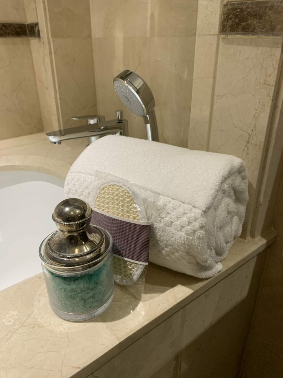 Anyway, the room was great, with everything you’d want and expect from a hotel and room at this level. The lounge area, in particular, had various seating options and fun art on the walls, while the bathroom was marble-tastic and well kitted out with amenities galore.