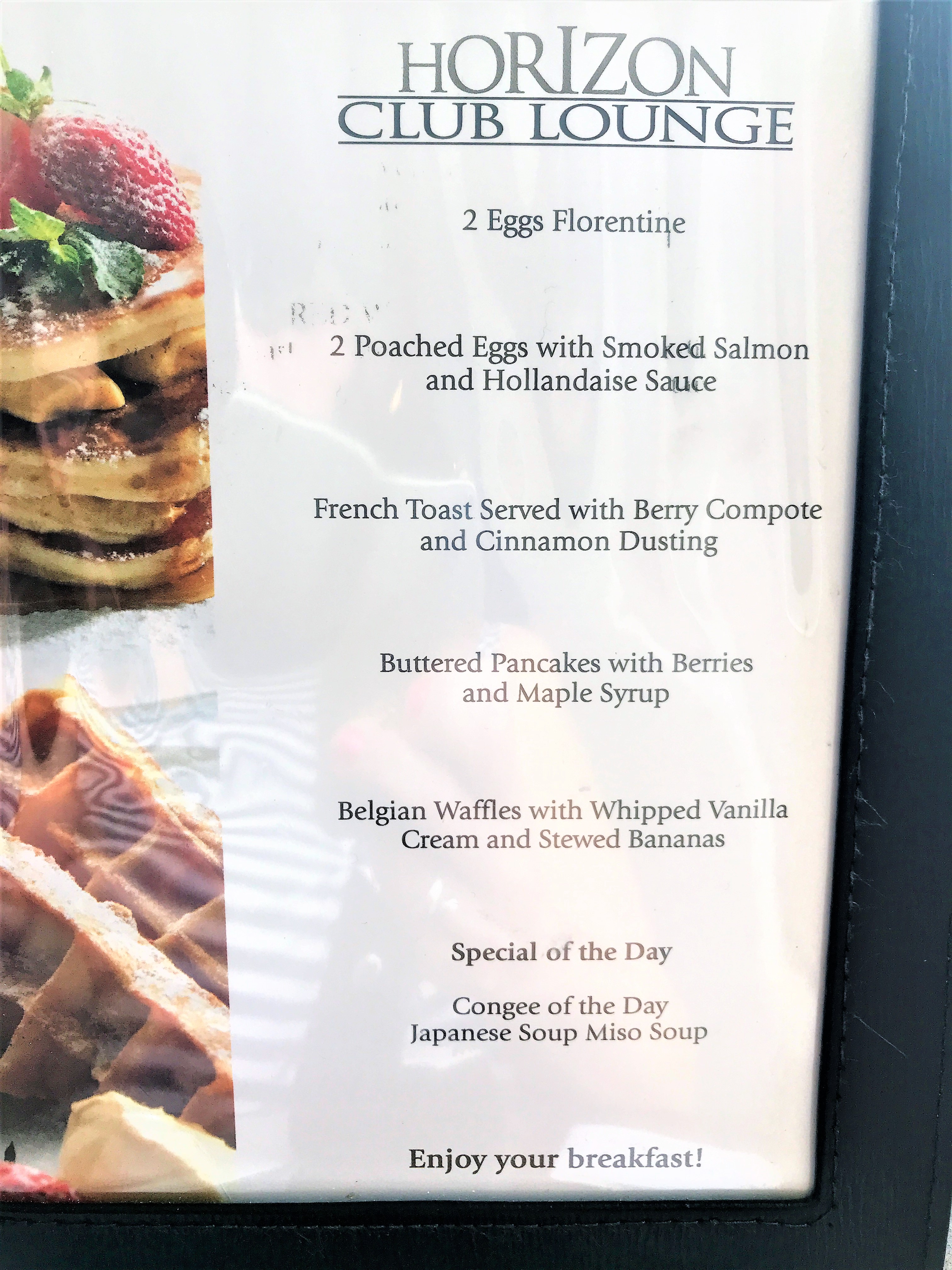 The Purser explained the benefits of the Horizon Club and the times of the food servings. This is the only thing I would criticise since I was half asleep after a very long journey and I was not really able to take it all in. I like to get given a letter with all the benefits that I can refer back to or in fact I don’t know why hotels don’t just email it to you automatically nowadays as it would make preplanning easier.