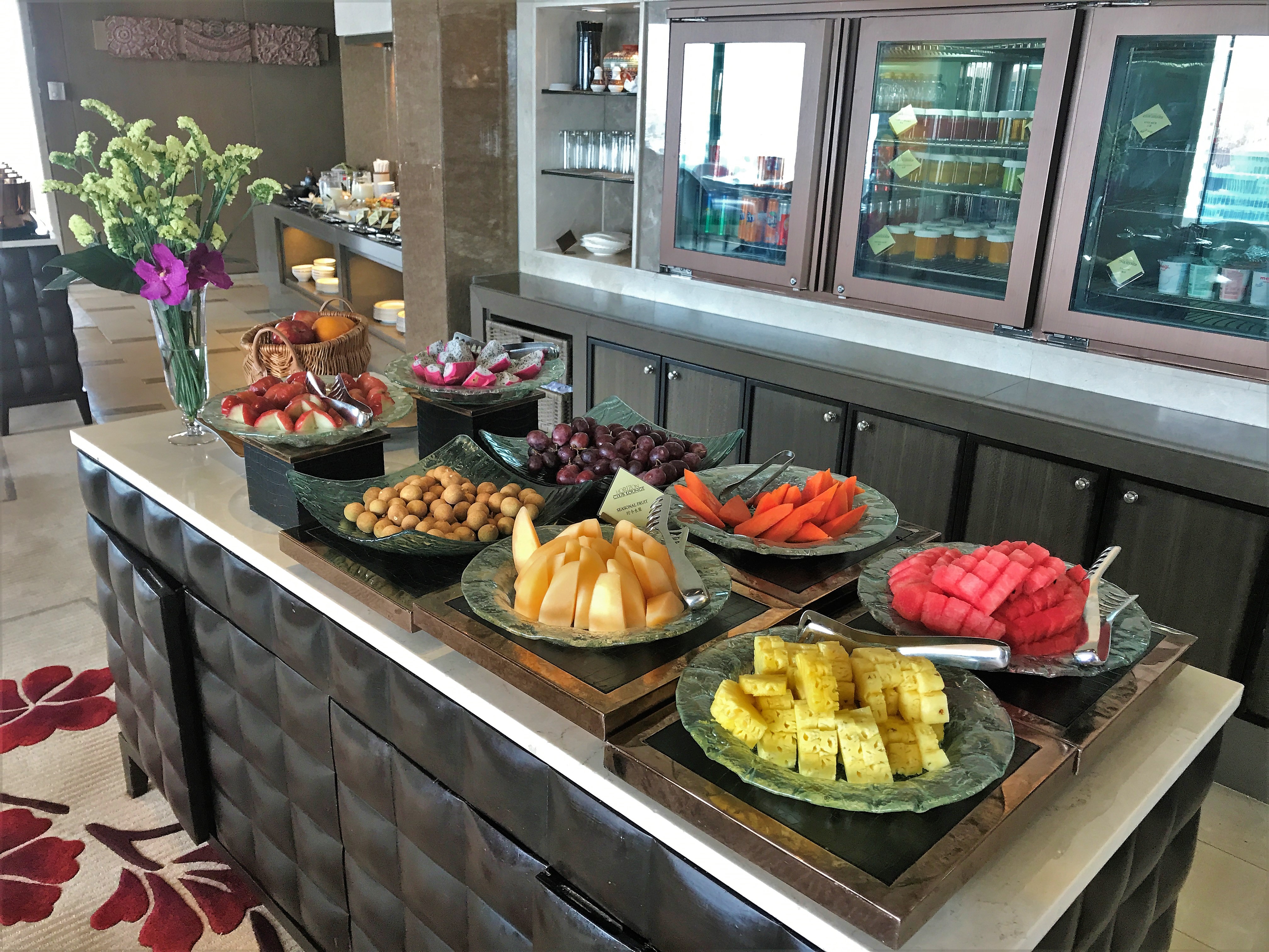 I arrived at around 6am in the morning after my Qatar flights from Helsinki but the Horizon Club lounge was already open for me to check in. The lounge is situated on the 24th floor of the hotel with fantastic views on two sides over the river. I was accompanied up to the lounge by one of the bellmen with my bags and offered a cold drink on arrival. Check in was swift and efficient and they recognised my new Jade status in Shangri-La hotels. This meant that I was entitled to choose a selection of complimentary drinks for the room from a list. Funnily enough Champagne did not appear to be an option for free! Here is my selection:
