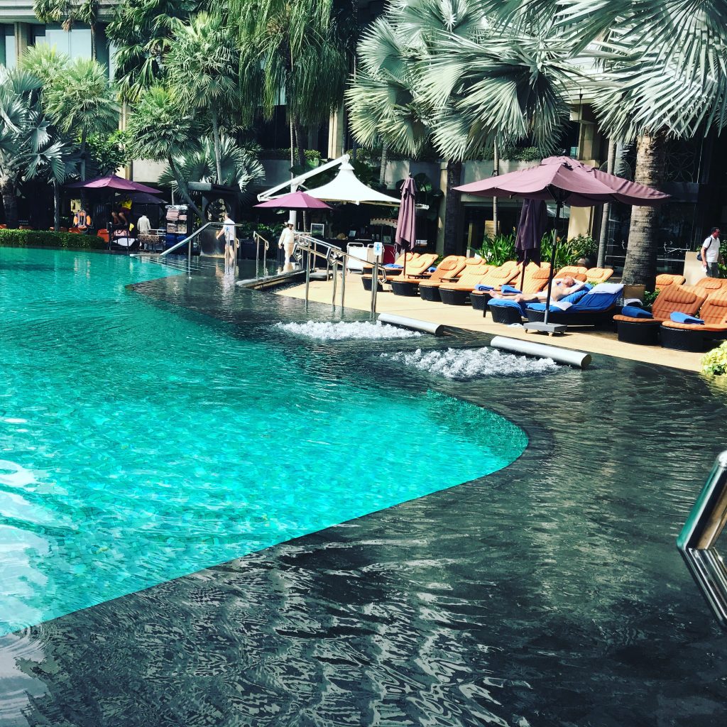 When you arrive at the pool you are greeted and escorted to your chosen chair where it is set up with towels and a chilled bottle of water is given to you. Drinks and food are available by the pool and the service was always swift to bring your order. I particularly like the “bubble beds” at the edge of the pool and the sitting areas in the pool to escape the Thai heat.