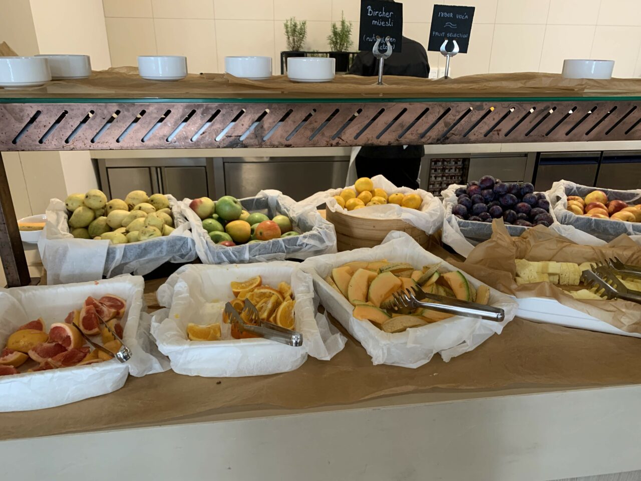 Breakfast in the hotel’s Leut restaurant was impressive in terms of choice, not so much in terms of service. The staff were pleasant, but either ignored you if you wanted coffee, or the minute you got up to get something from the buffet would clear the entire table including my barely-drunk juice and coffee!
