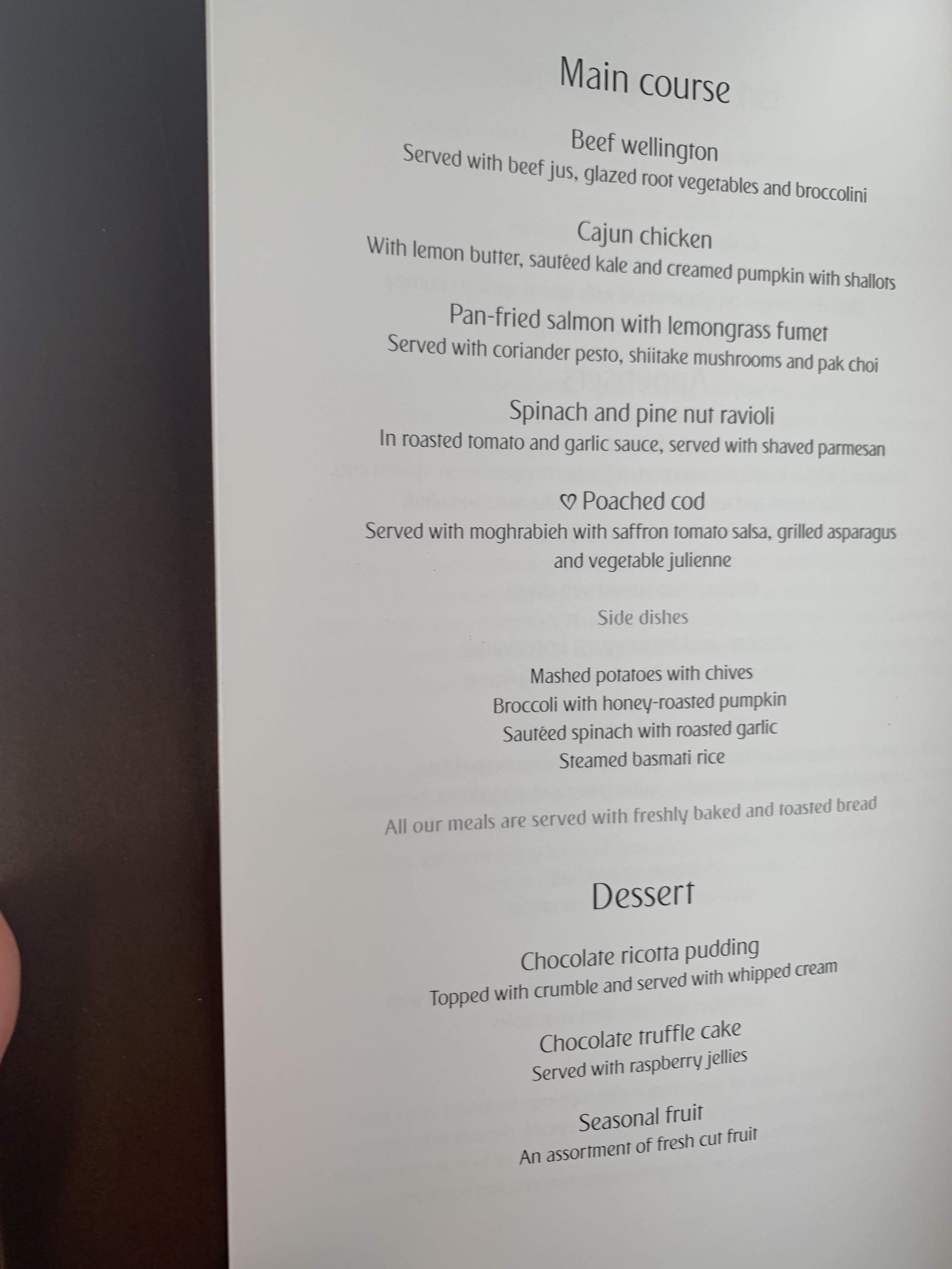 The dessert selection was rather disappointing as they were both chocolate which not being a fan of chocolate desserts only left the fruit.