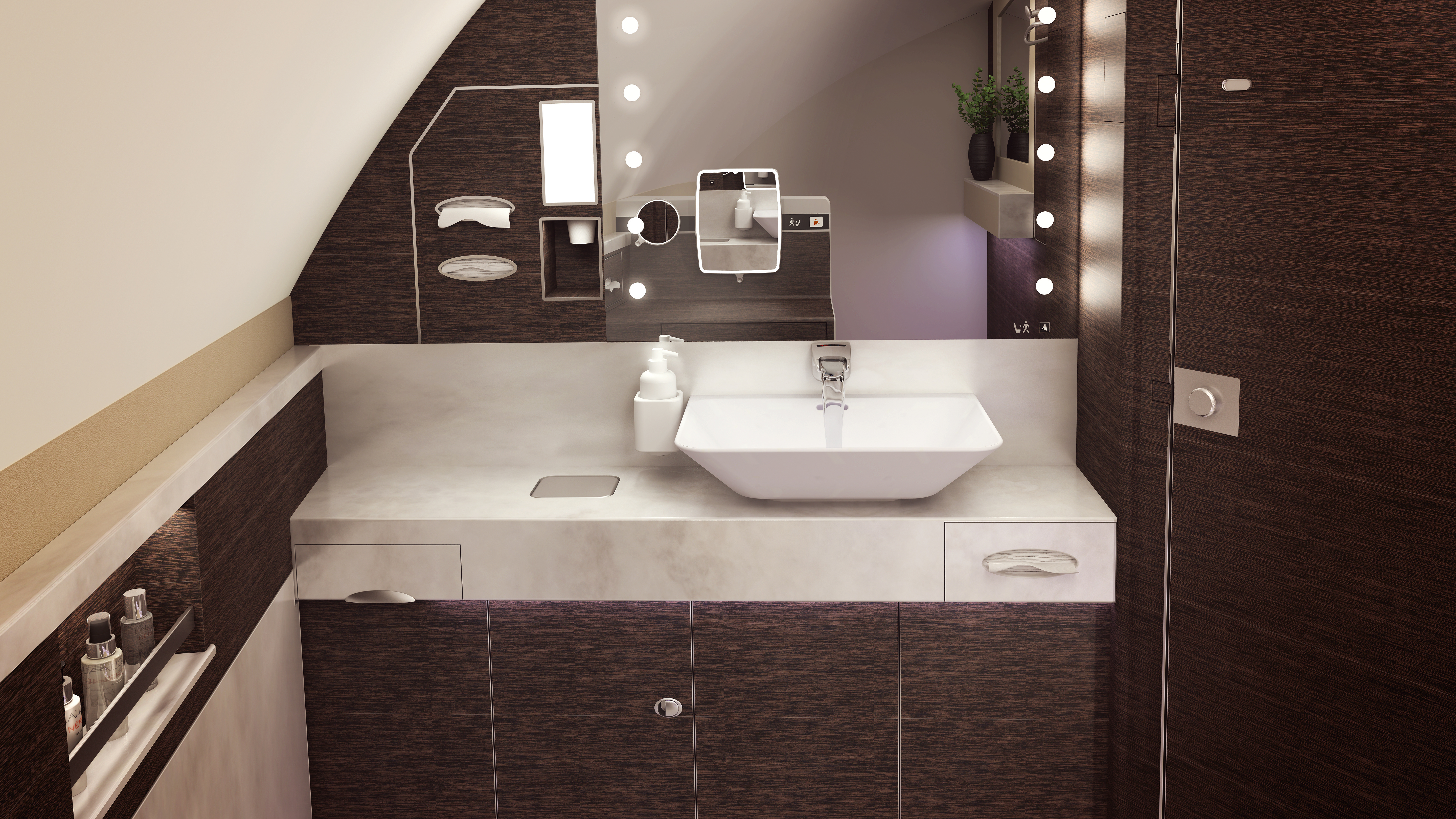 The 6 suites share 2 bathrooms, one of which features a sit-down vanity counter. However, there does not appear to be a shower unlike Etihad and Emirates which is a shame.