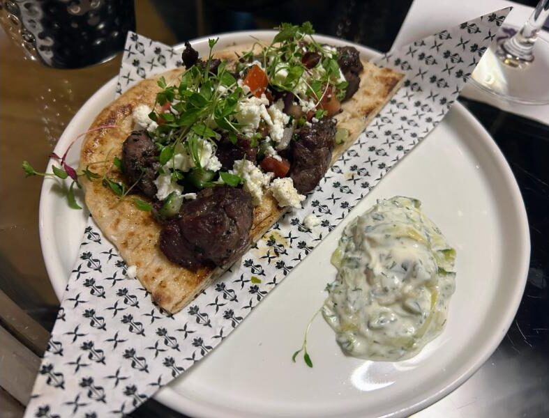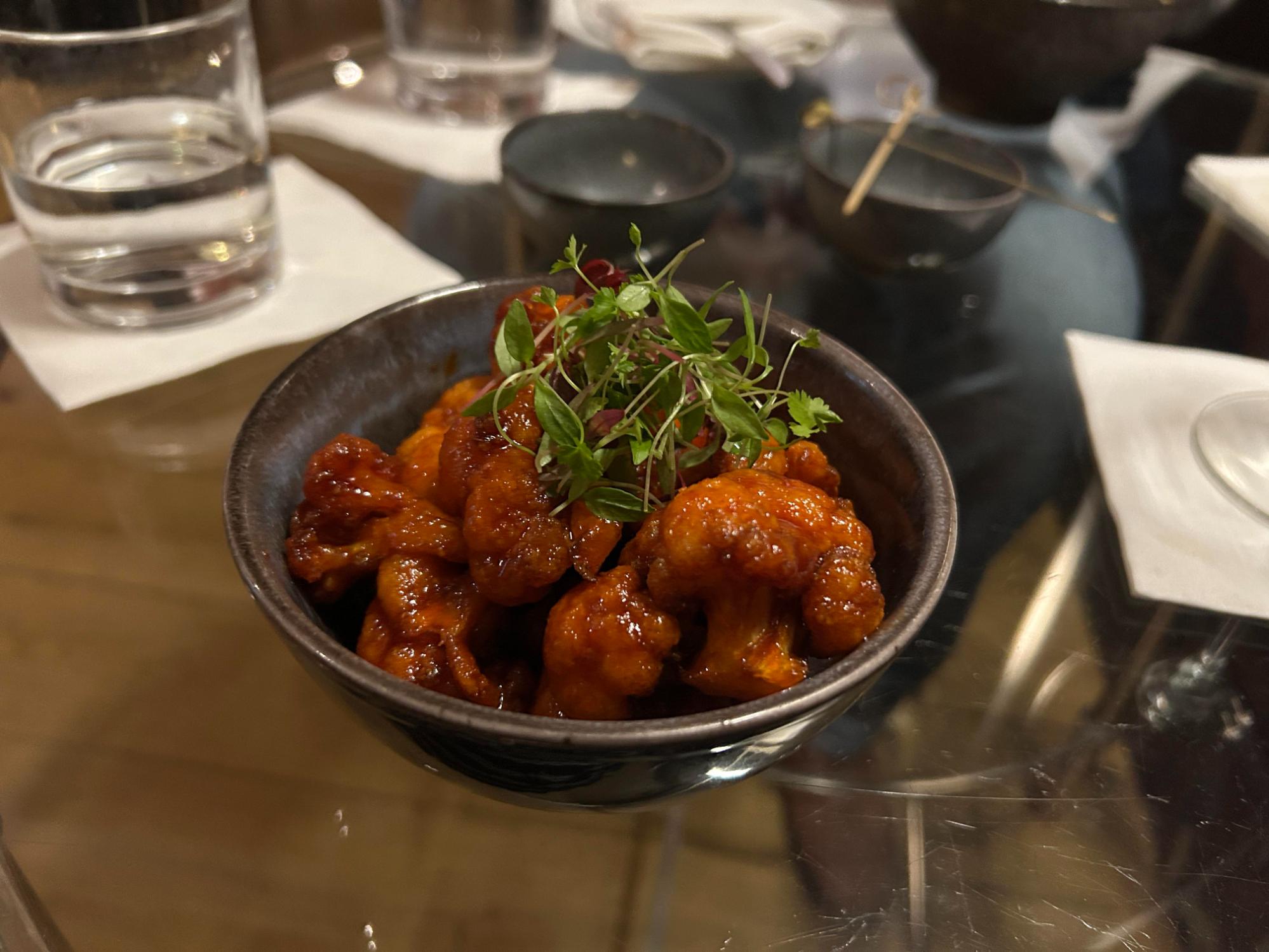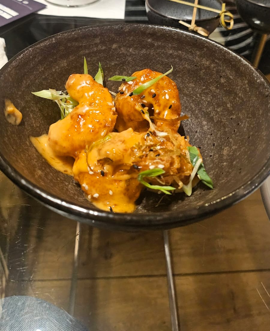 If you don’t want a full meal, there’s plenty to choose from on the bar menu, from small bites to a steak sandwich. We tried the Korean cauliflower, the Bang Bang prawns, the lamb souvlaki, and the steak sandwich. They were all bursting with flavour, very fresh, and felt high-quality.