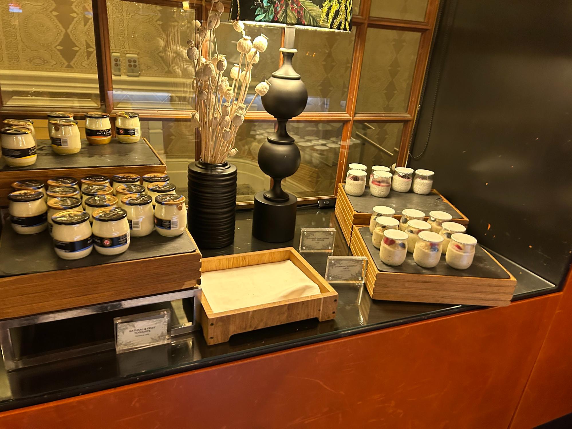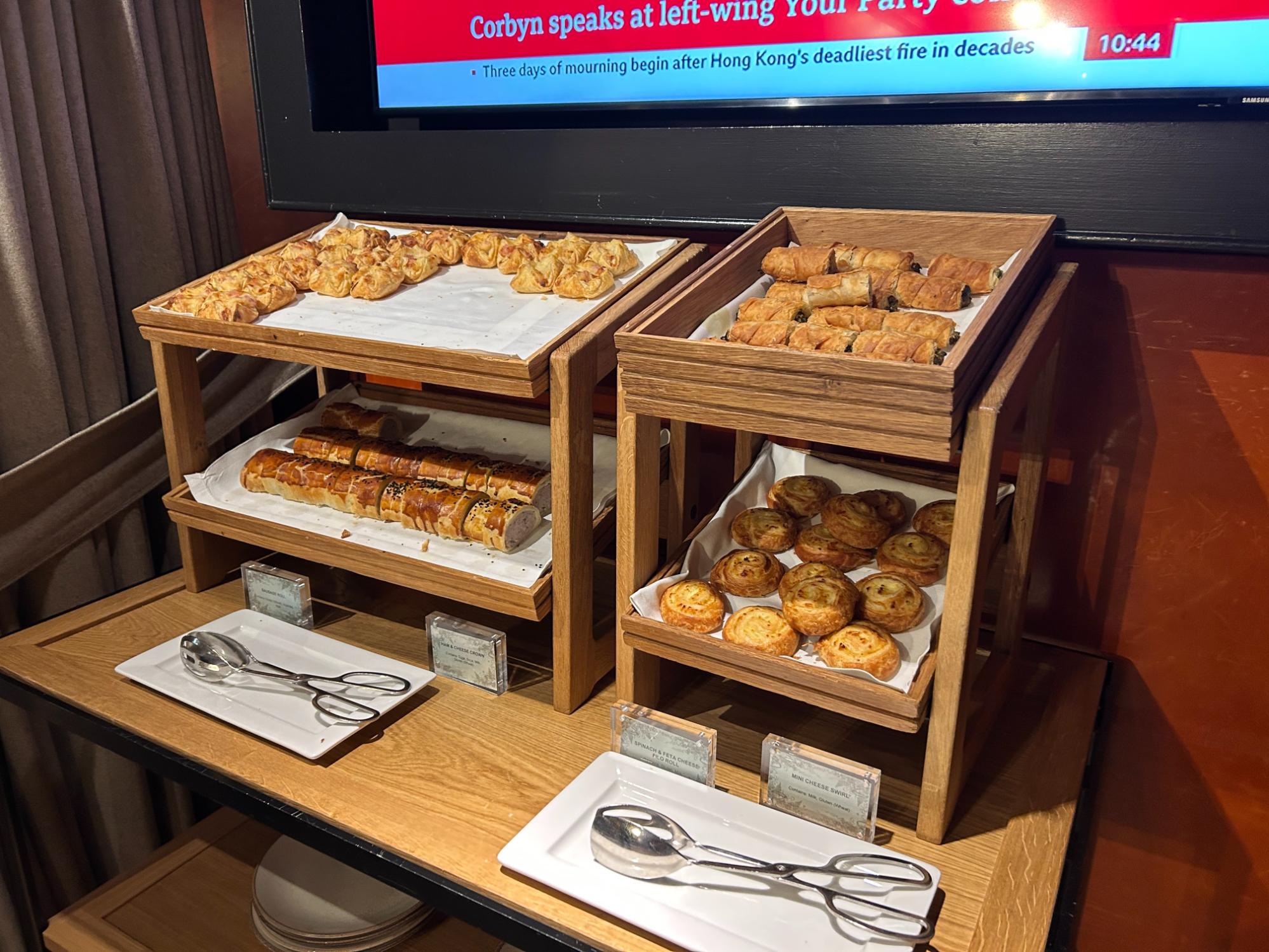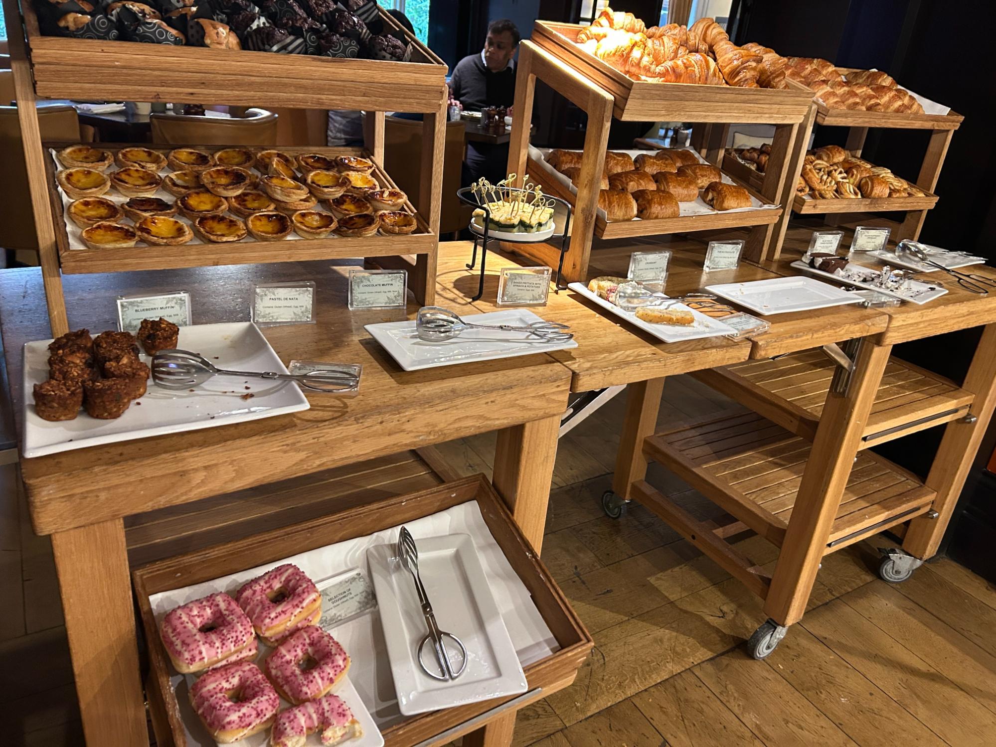 As well as a full cooked breakfast with some decent rosti, there was an interesting choice of cold items, including smoked salmon and charcuterie, cheeses, salad, premium yoghurts, and cereal. If you are gluten-free, they have a separate section with cereal, muffins, and bread. The pastry section was particularly good with some delicious pastel de nata (Portuguese custard tarts).