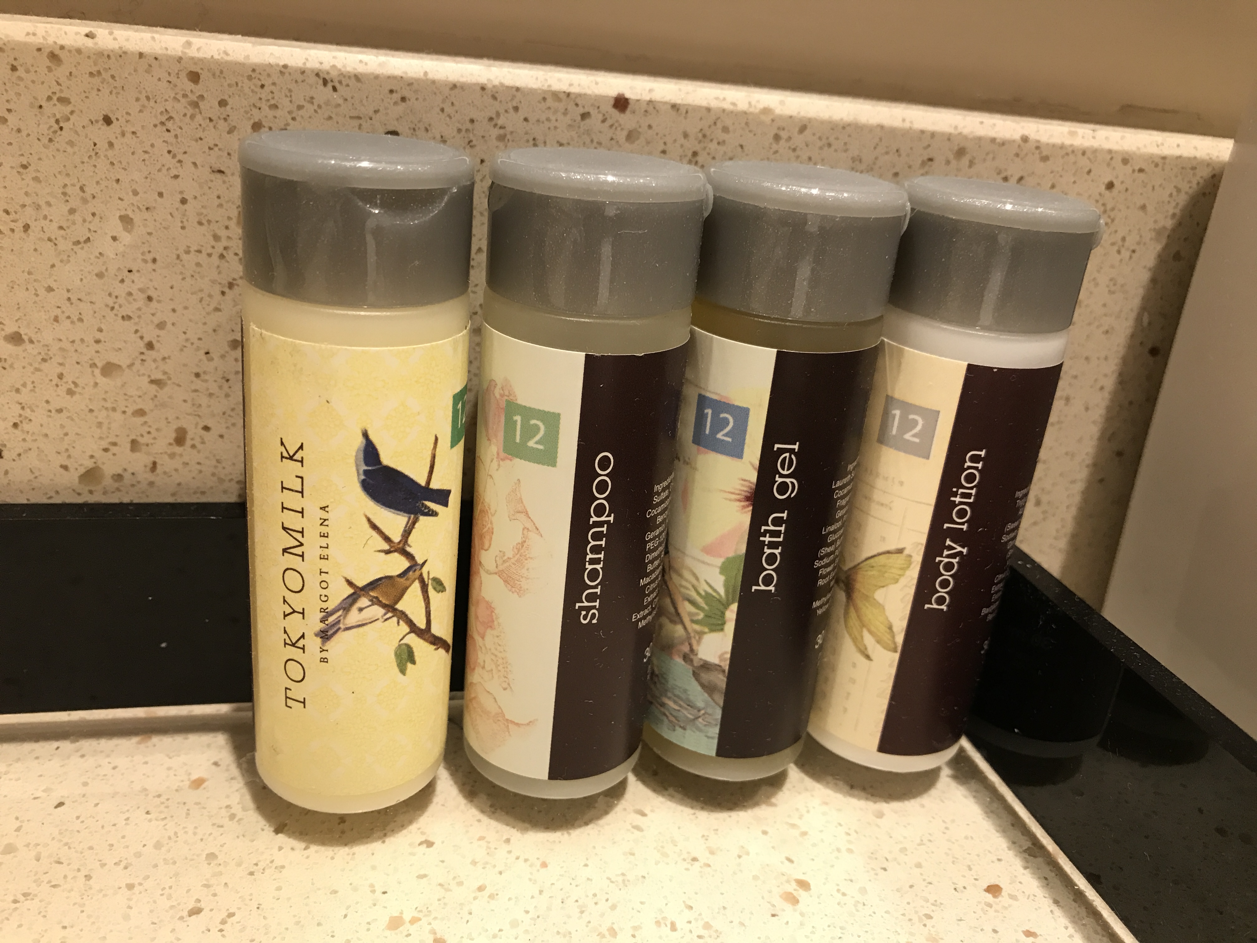 The bathroom was modern but only had a shower over the bath as I had requested a bath. You can also request a walk-in shower instead. The toiletries were a brand that I had never heard of – TokyoMilk. Whilst the labels looked pretty, the plastic bottles looked rather cheap. I quite liked the products though.